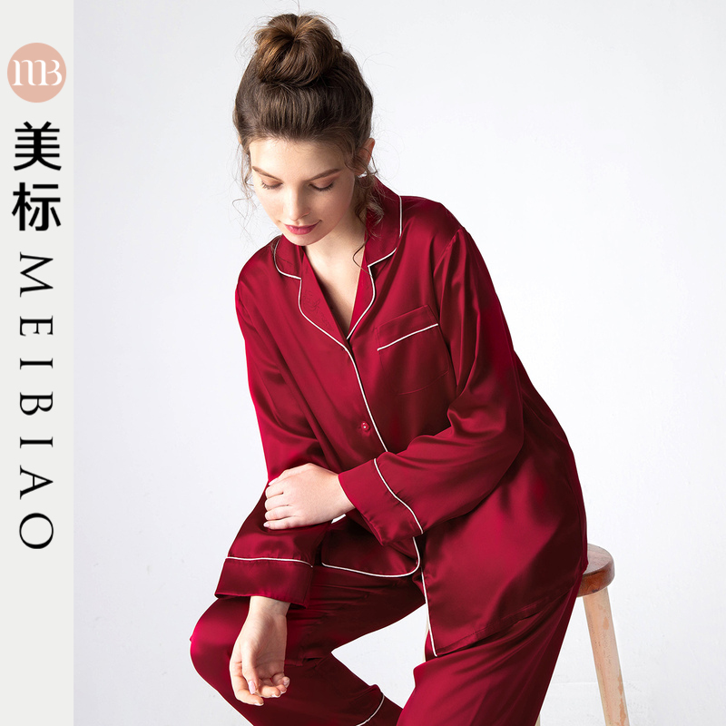 美标官方旗舰店真丝睡衣女重磅100%桑蚕丝春秋长袖套装家居服