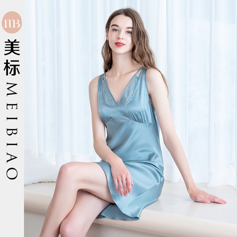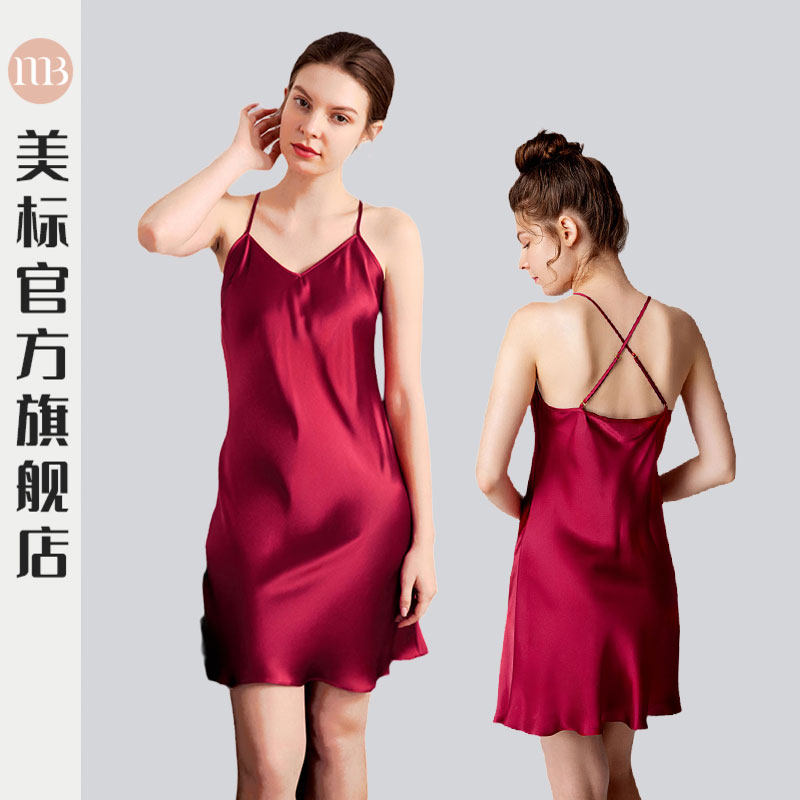 美标2023夏季新款女士重磅真丝吊带睡裙性感薄款家居服睡衣短裙