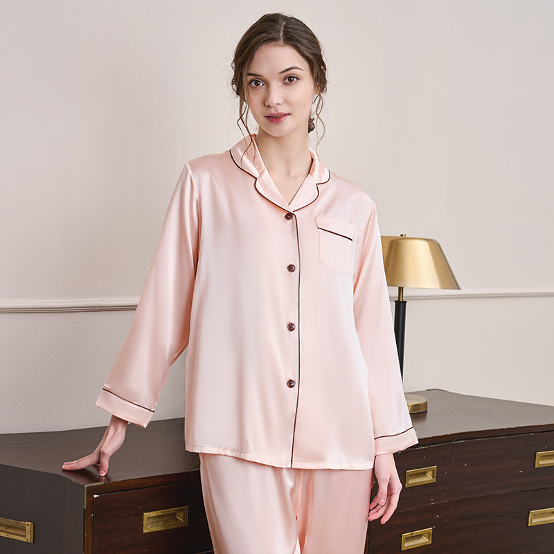 美标丝绸女士睡衣19姆米重磅真丝女100%桑蚕丝长袖家居服套装春秋