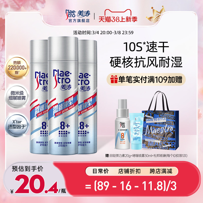 美涛定型喷雾8级激速锁型强力哑光丰盈蓬松男女士保湿发胶啫喱水