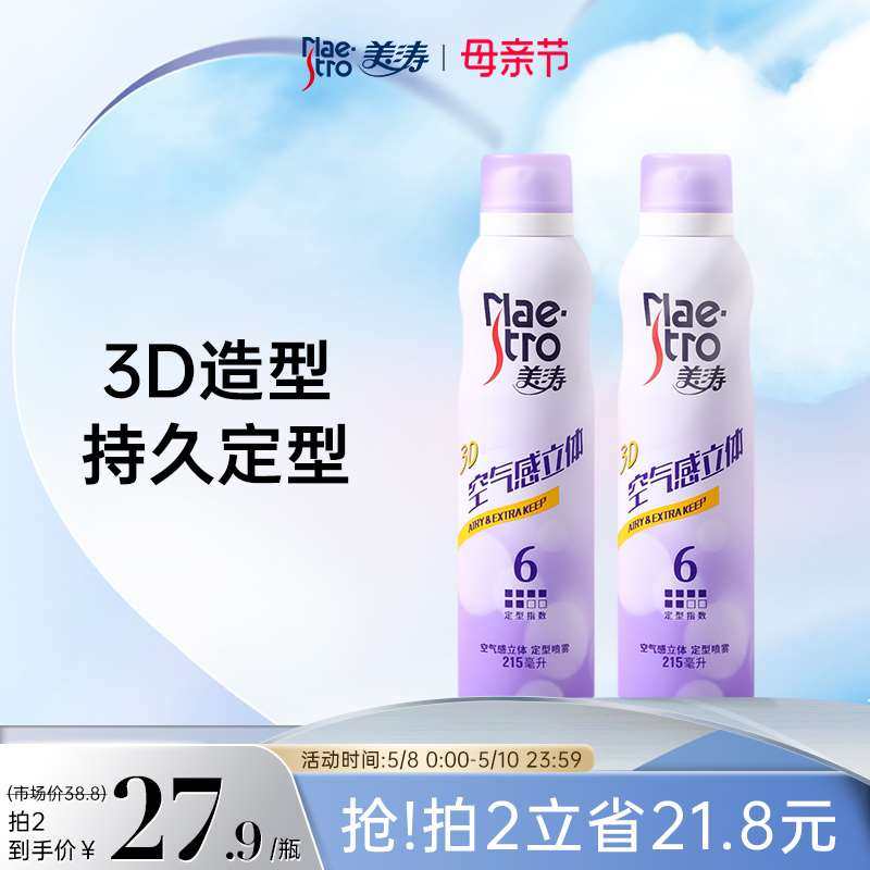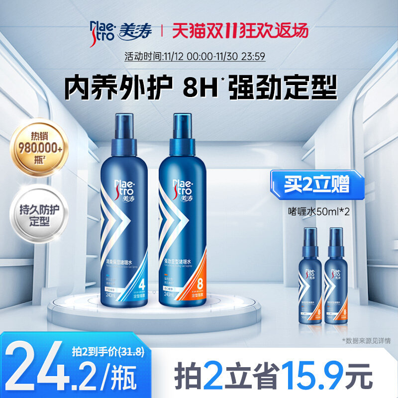 【秒杀福利】美涛激速定型喷雾215ml*2瓶男士发胶头发干胶持久