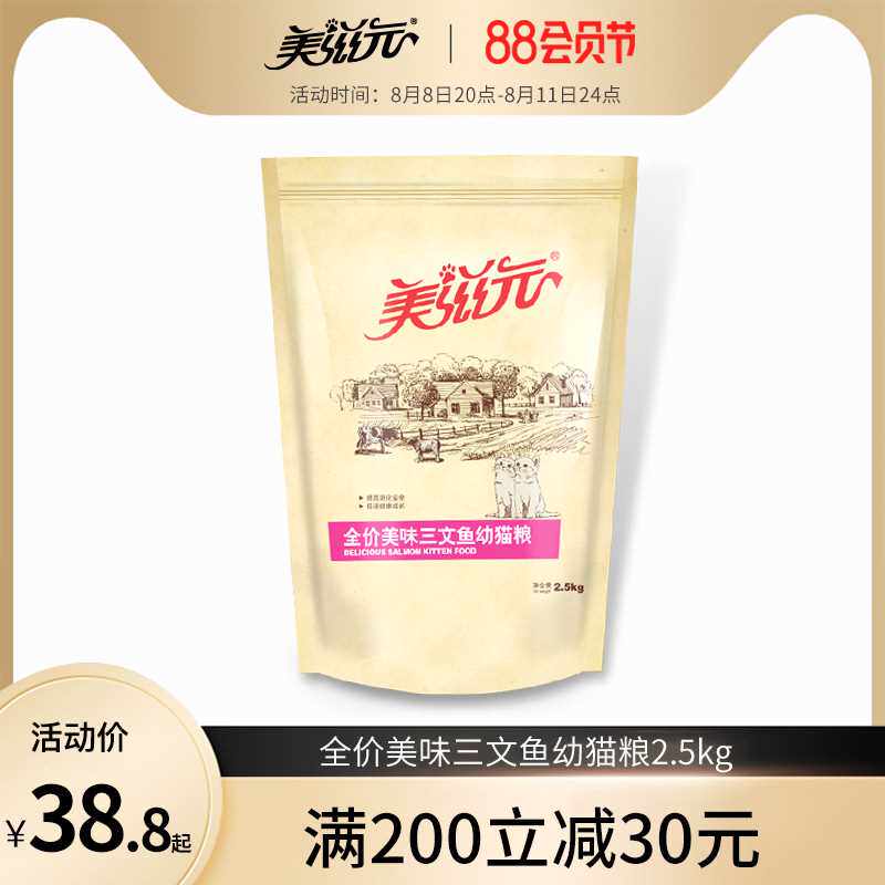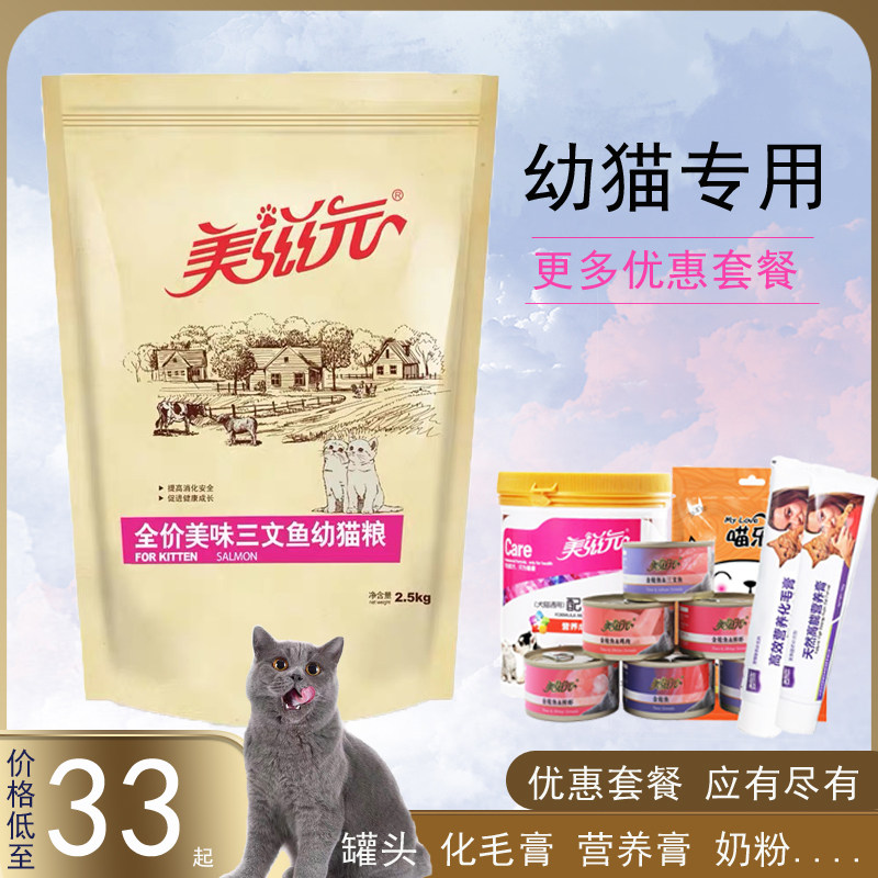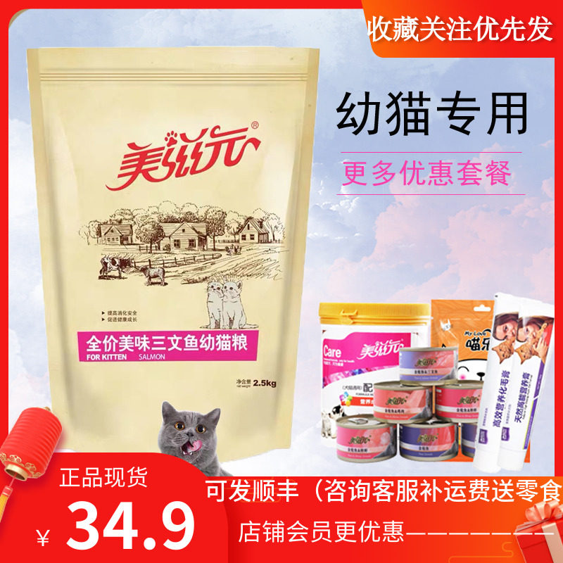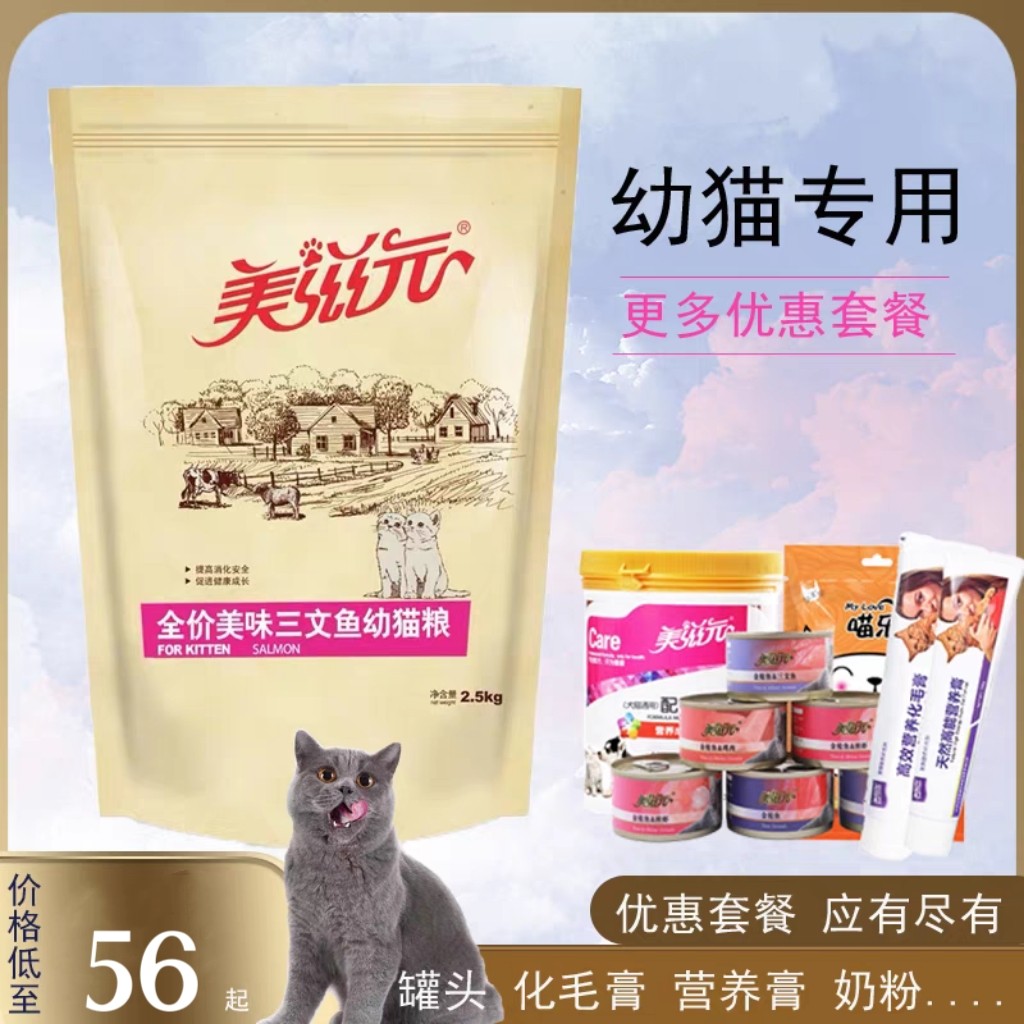美滋元猫粮幼猫猫粮美味三文鱼味2.5kg新货幼猫通用粮增肥