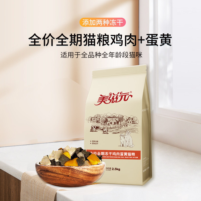 美滋元全价全期冻干鸡肉蛋黄猫粮2.5kg 成幼猫全期粮增肥营养发腮