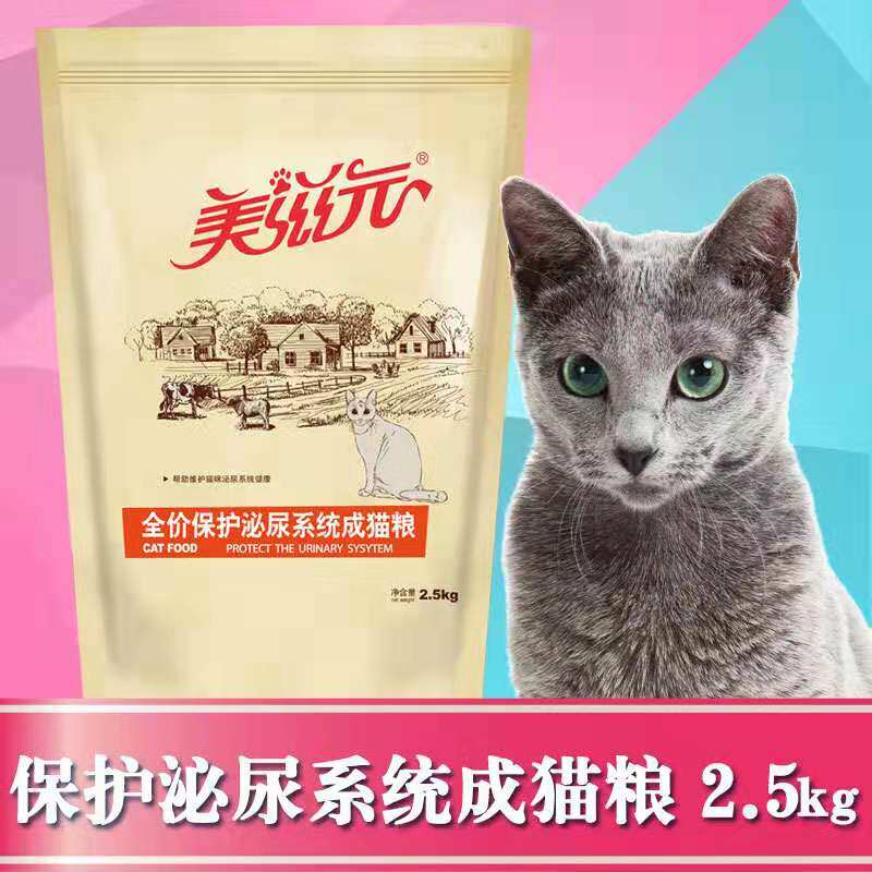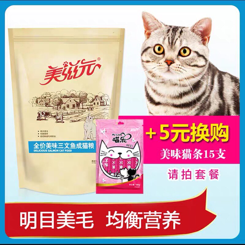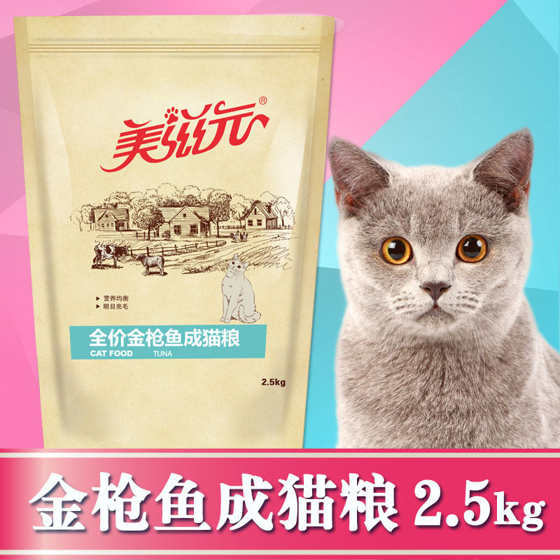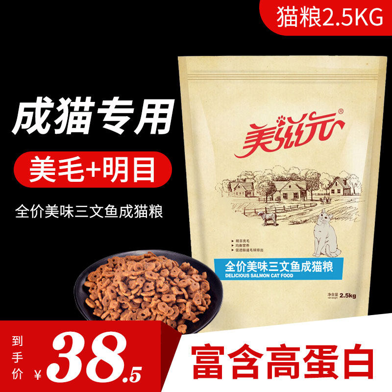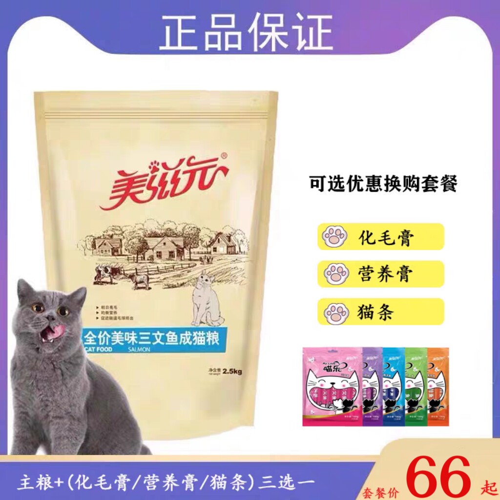 美滋元猫粮美味三文鱼味成猫猫粮2.5kg成猫粮小包大包装23省包邮
