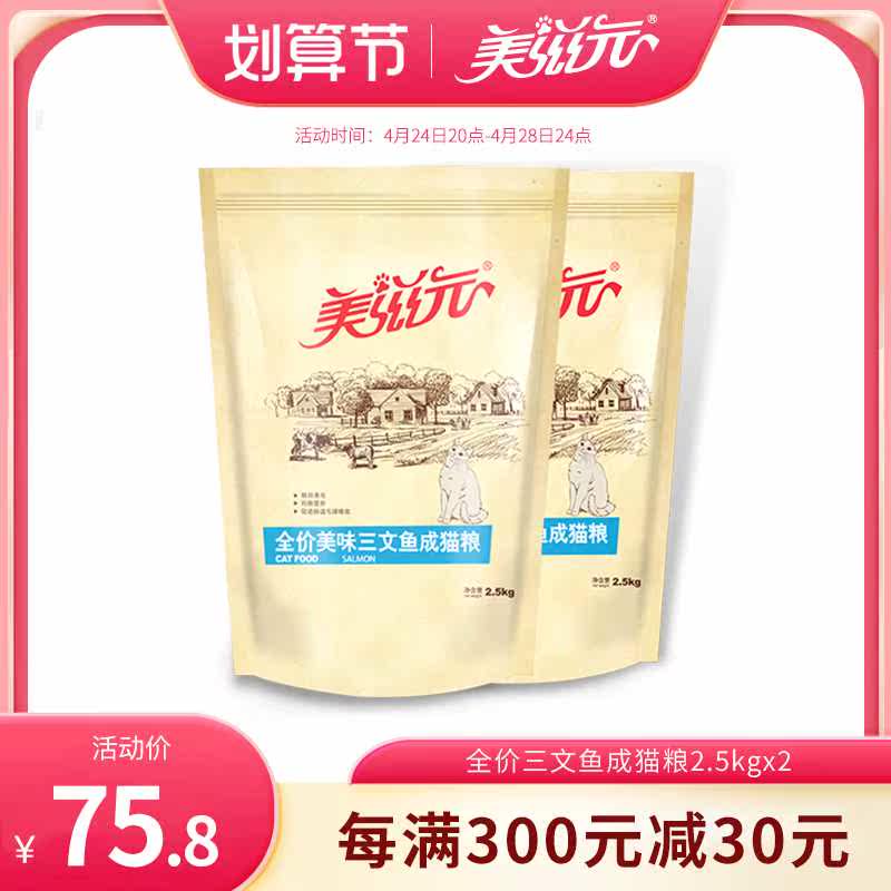 美滋元美味三文鱼成猫猫粮2.5kg*2袋12个月成年营养猫粮 拆分发货