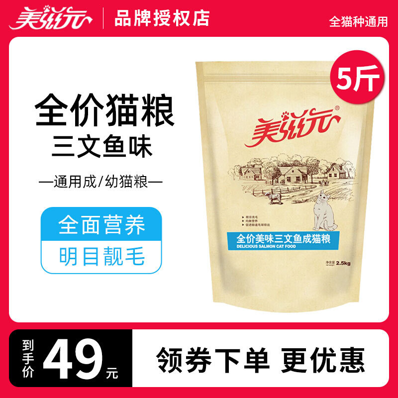 美滋元猫粮2.5kg美味三文鱼味全价猫粮5斤发腮成年猫粮幼猫粮大包