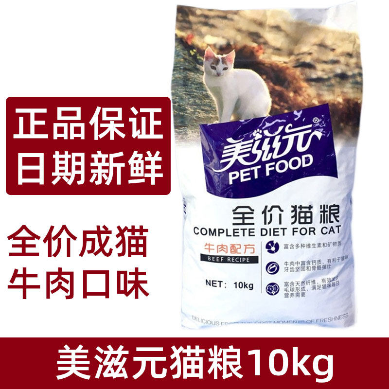 美滋元全价成猫粮牛肉味三文鱼口味高营养猫主粮原厂10公斤包装