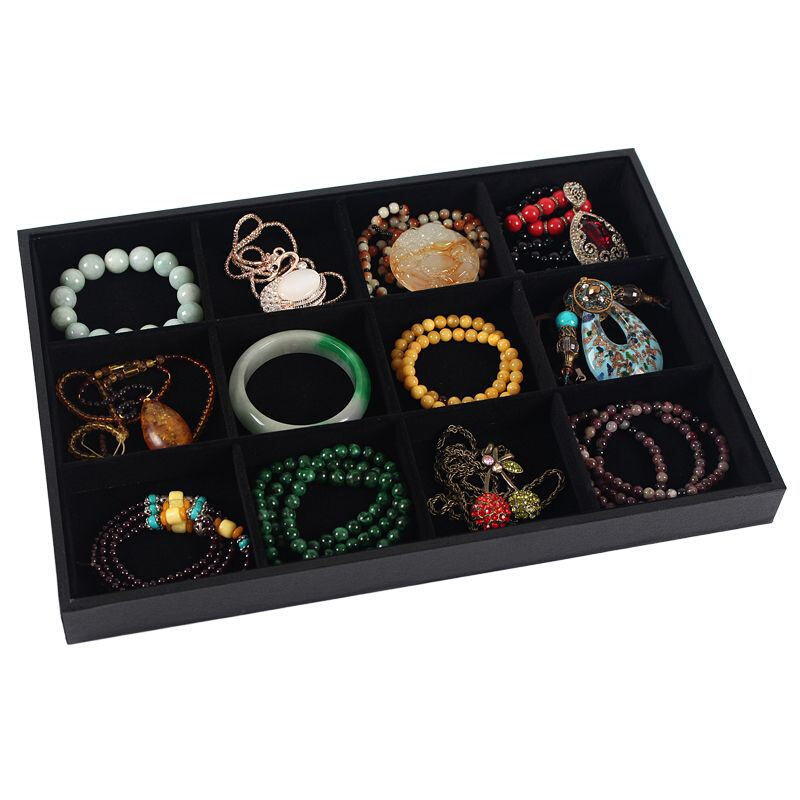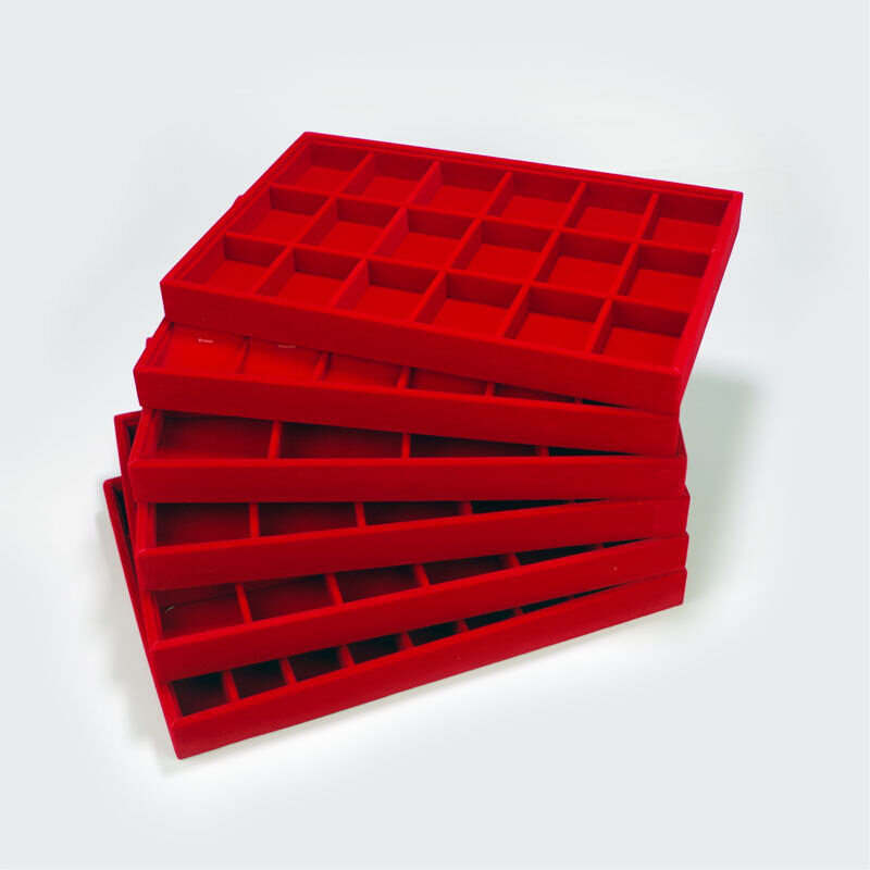 直供大红色绒布首饰托盘戒指项链金银玉手镯格子珠宝盒看货盘展示