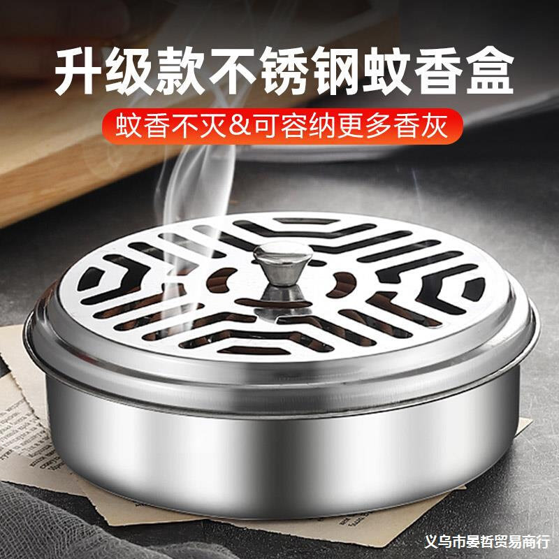 速发不锈钢蚊香盒带盖檀香架大号接灰香炉家用室内蚊香盘托盘