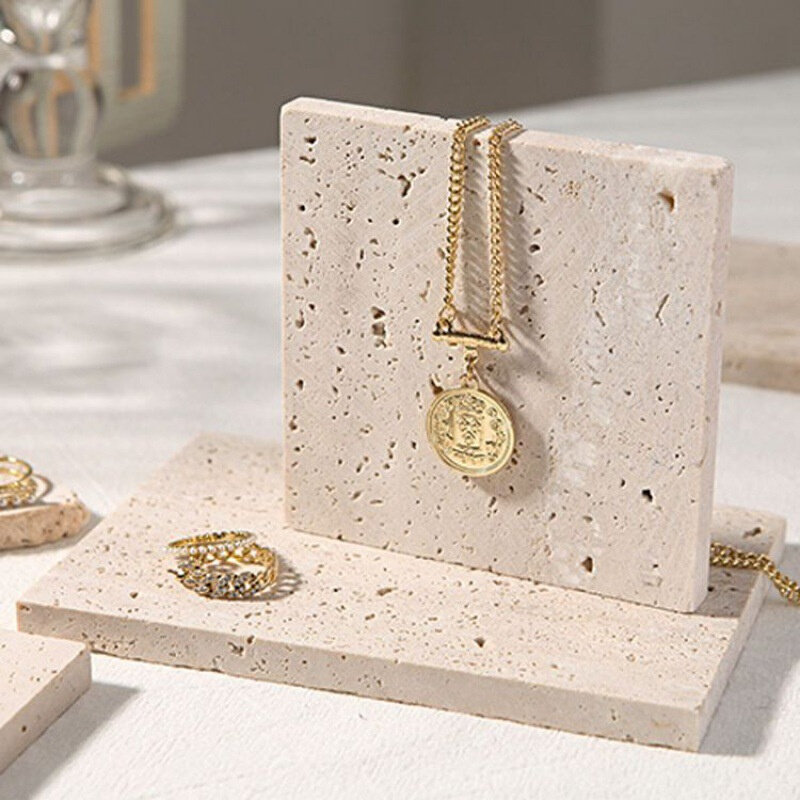 直供洞石托盘风首饰洞洞石头饰品陈列展示台拍照道具摆件民宿风陈
