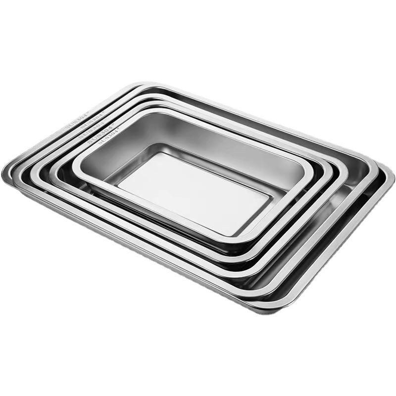 直供特厚不锈钢方盘平底托盘浅长方形特大加深毛巾盘烤箱蒸饭餐盘