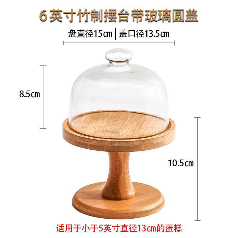 直供高脚蛋糕托盘旋转展示架木质水果面包试吃盘带盖糕点蛋糕罩玻