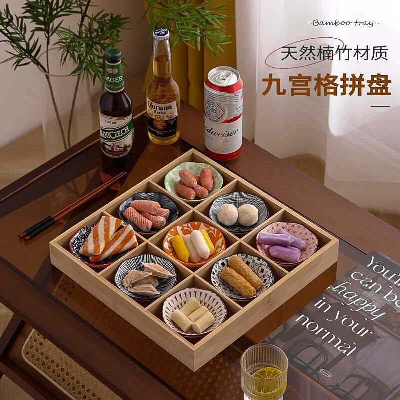 速发九宫格餐具火锅托盘盒子拼盘格子木盒调料盒分格盘日式干果盘