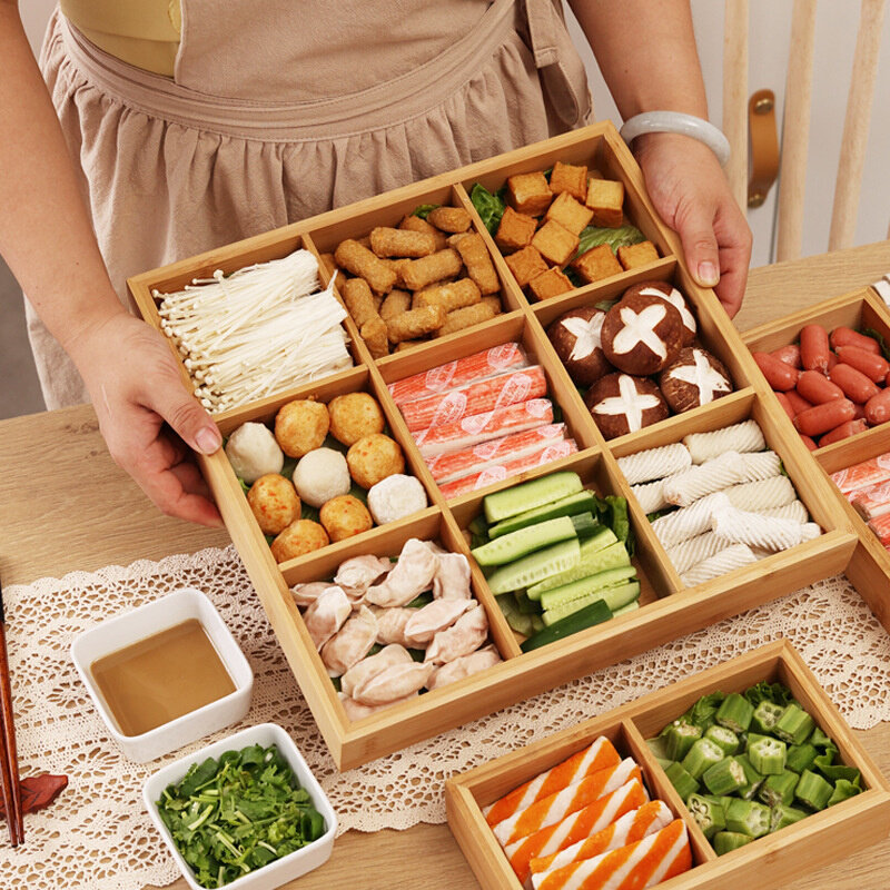 速发火锅店餐具餐盘特色火锅蔬菜托盘分格拼盘套装竹木创意九宫格