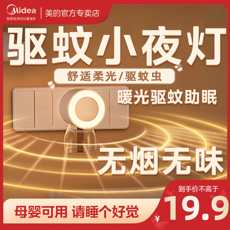 美的驱蚊小夜灯蚊香液卧室睡眠灯床头插电柔光插座灯夜光灯无味