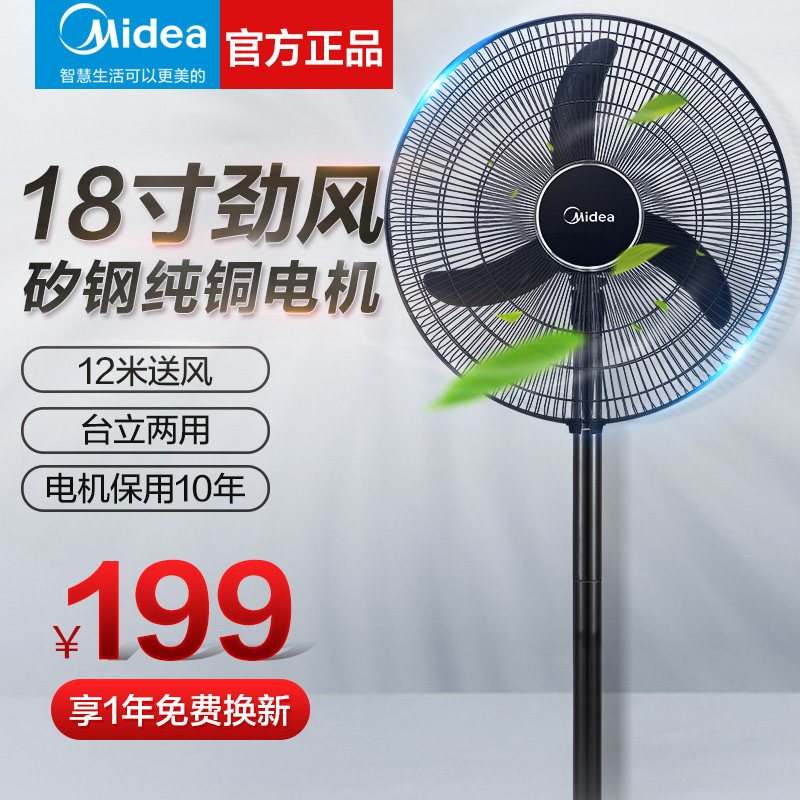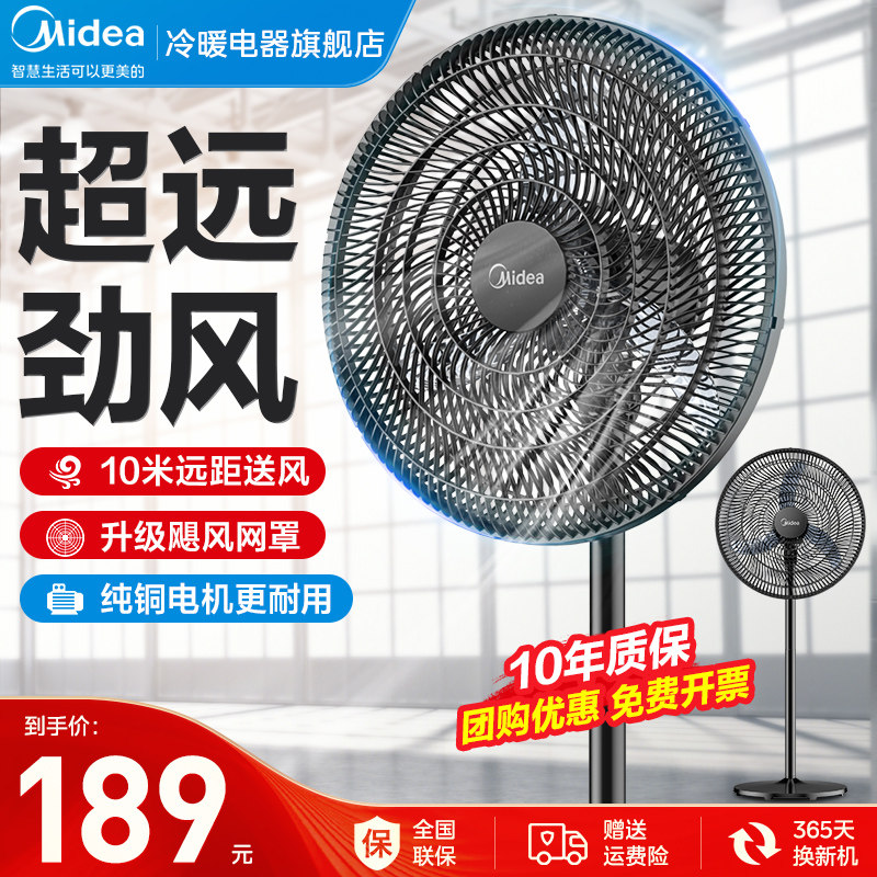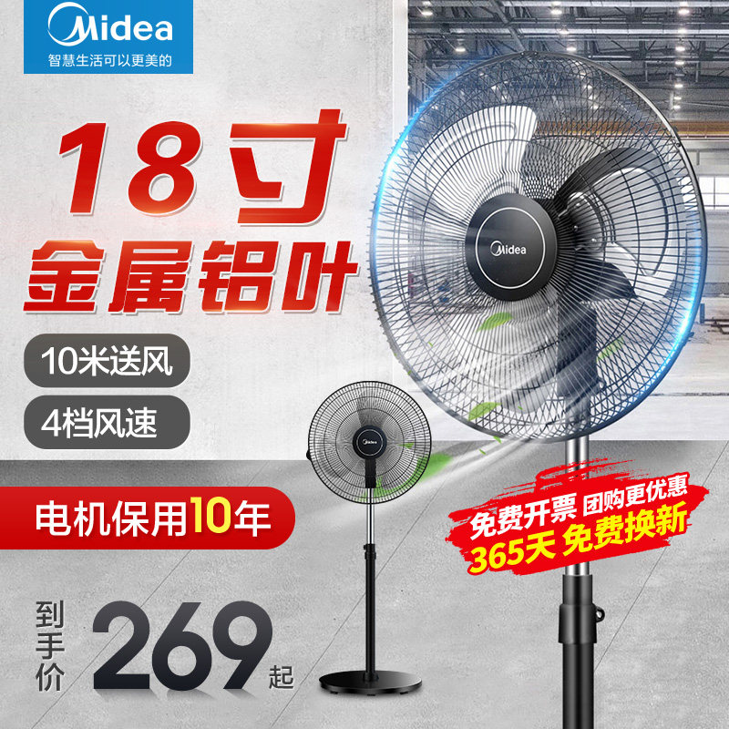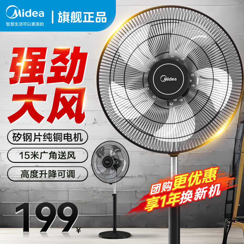 美的电风扇落地扇家用静音工业风扇强力摇头立式大风力纯铜牛角扇