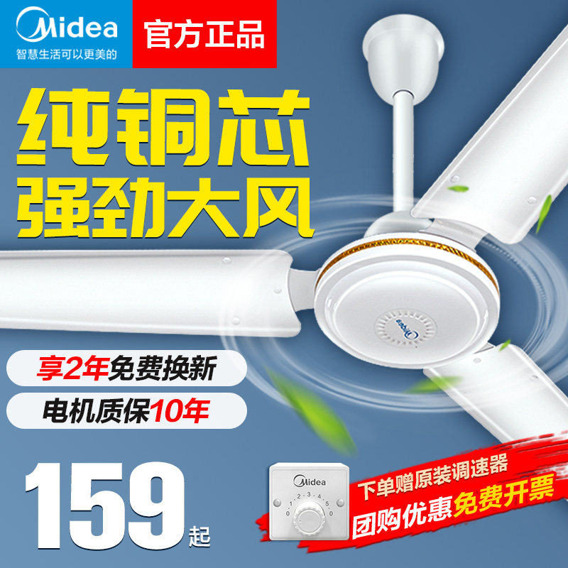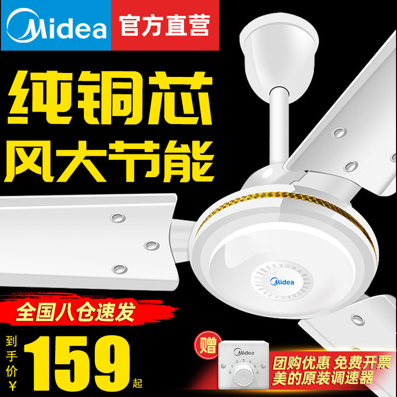 美的吊扇家用餐厅吊顶电风扇56寸客厅大风力工业扇宿舍吊式电扇