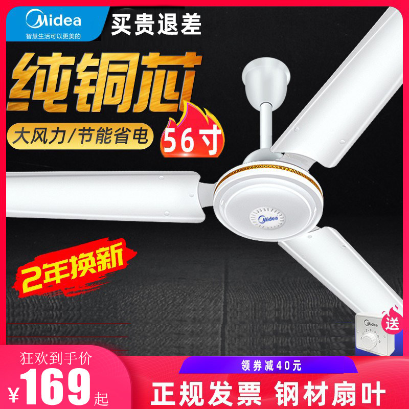 美的吊扇大风力风扇家用客厅商用工厂餐厅吊顶式宿舍工业铁叶56寸