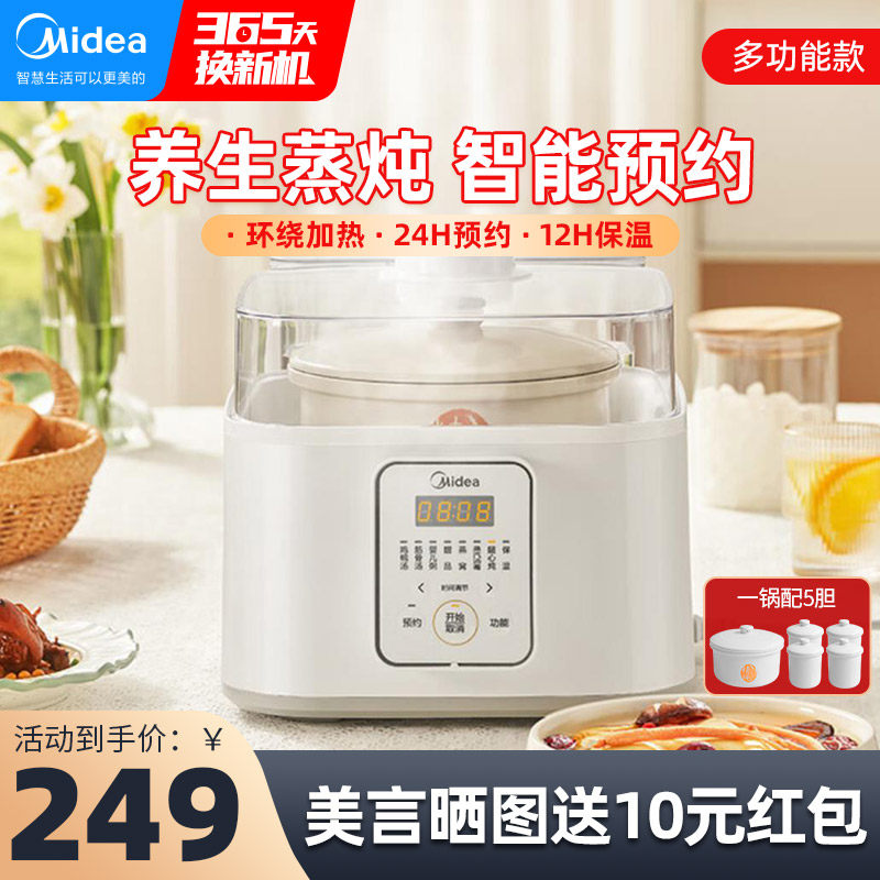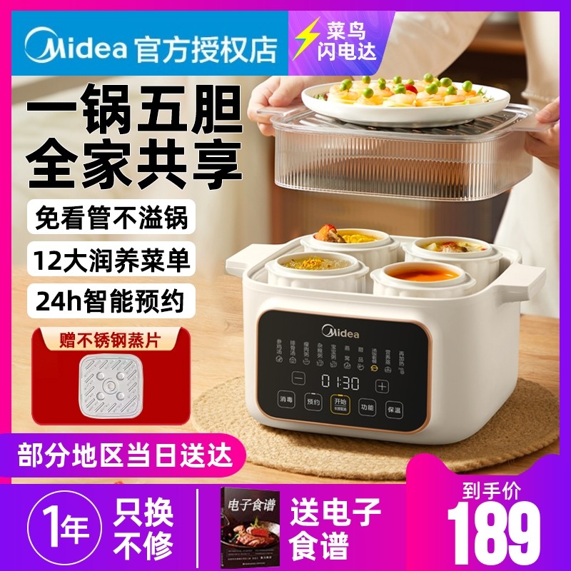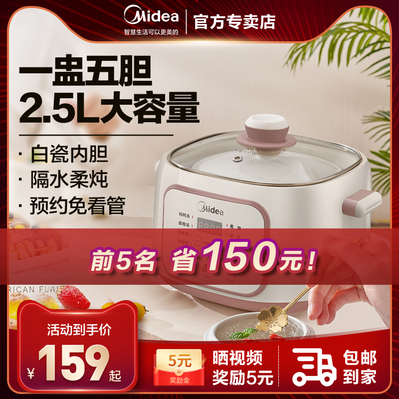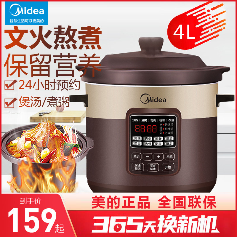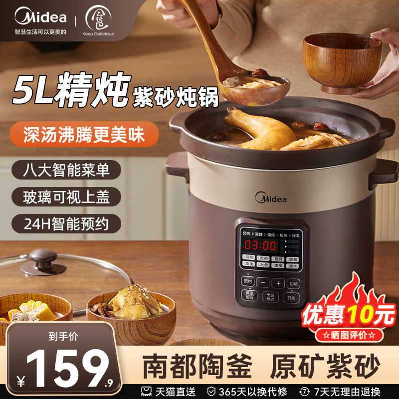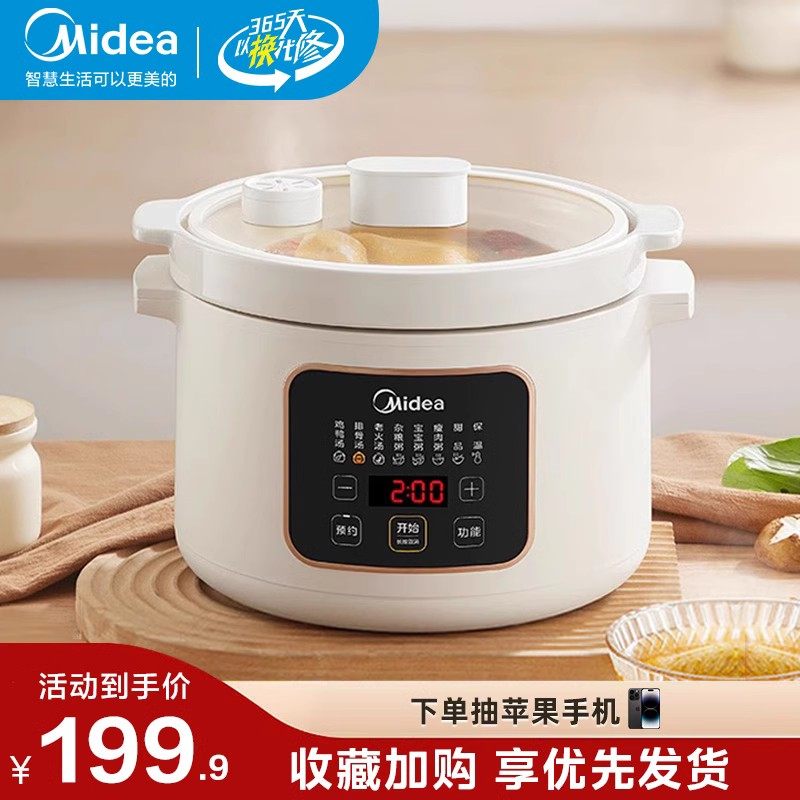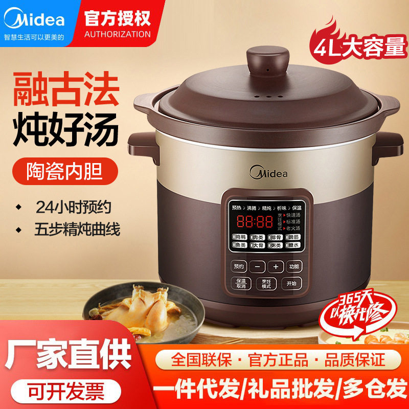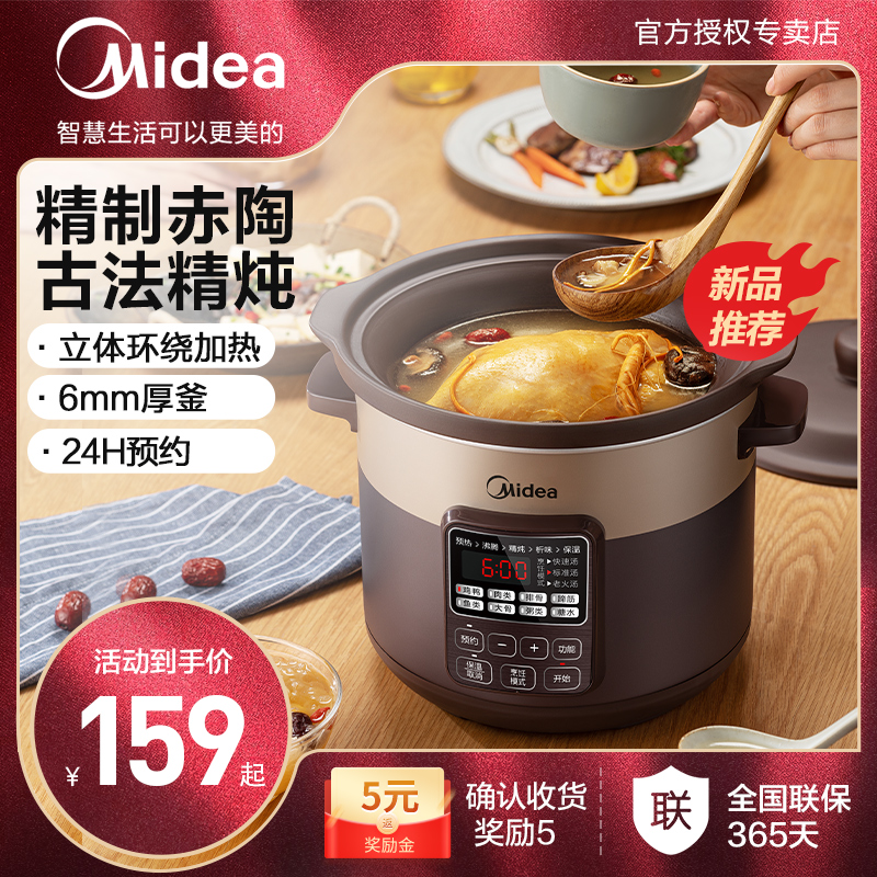 美的电炖锅5L家用预约大容量4L陶瓷全自动紫砂锅煮粥煲汤锅电炖盅
