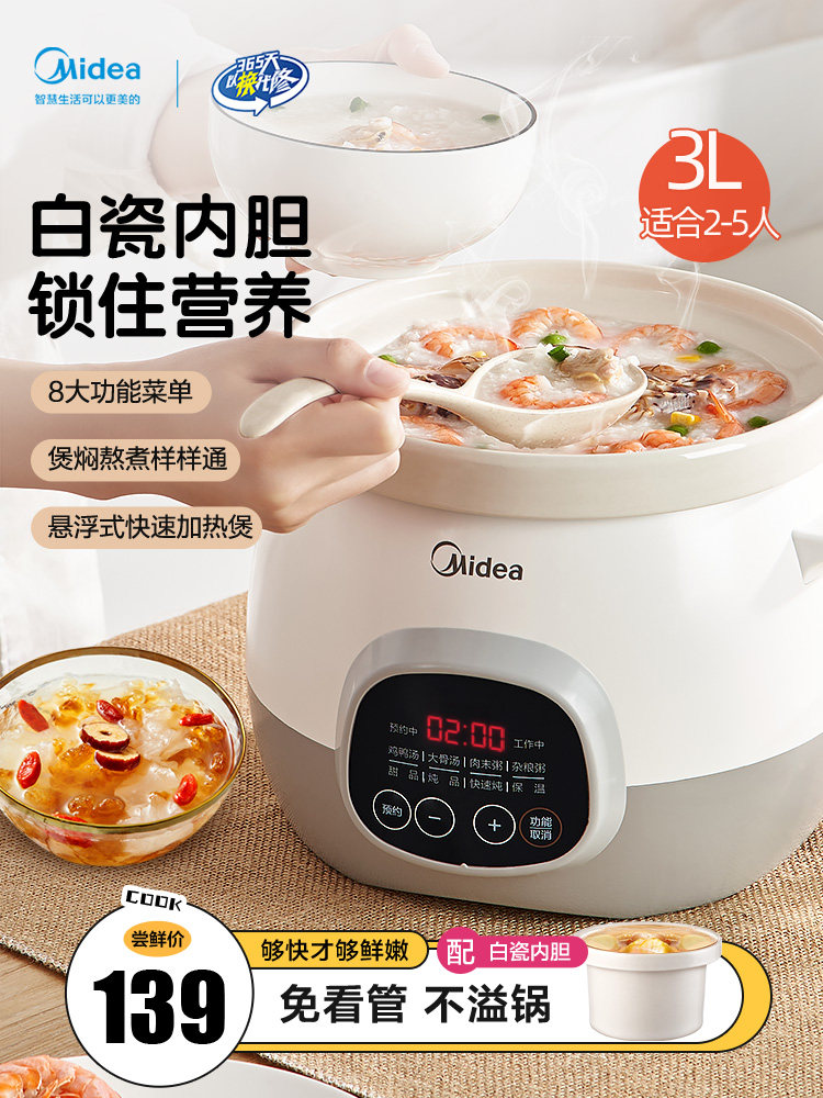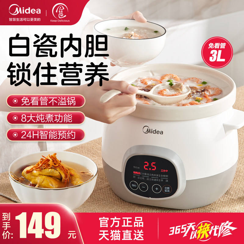 美的电炖锅全自动炖盅隔水炖家用白瓷炖汤锅煮粥锅熬粥专用养生锅