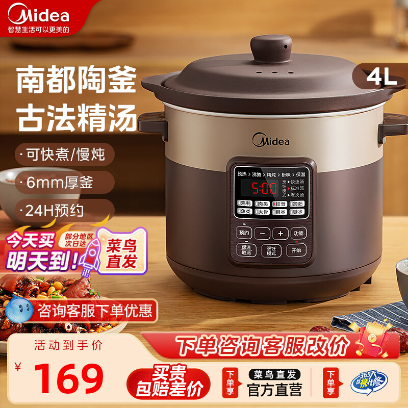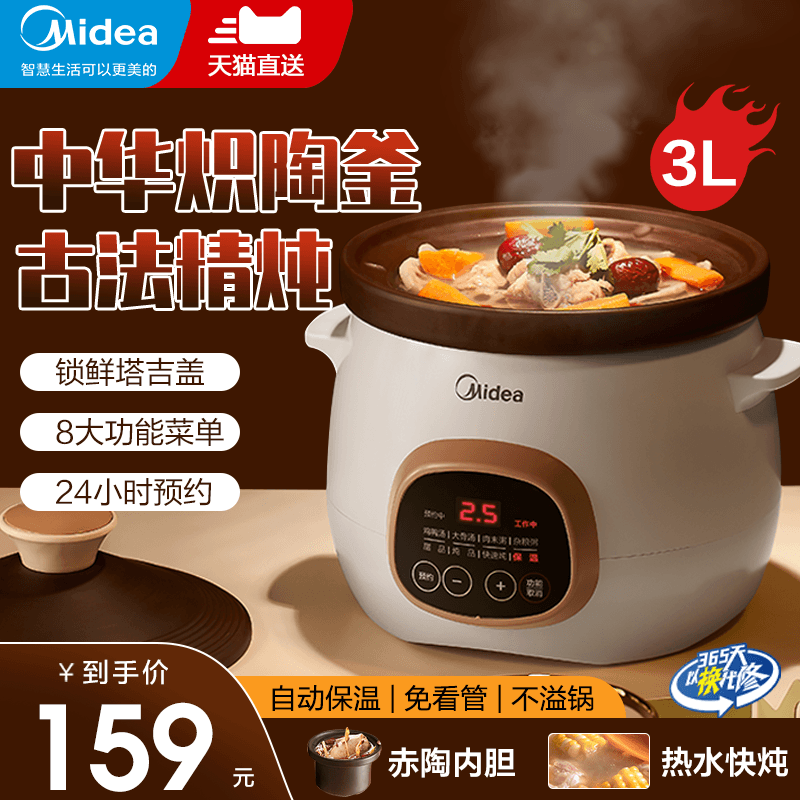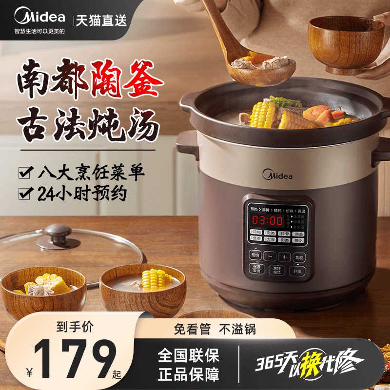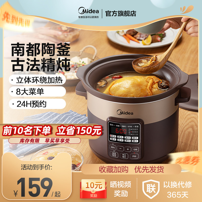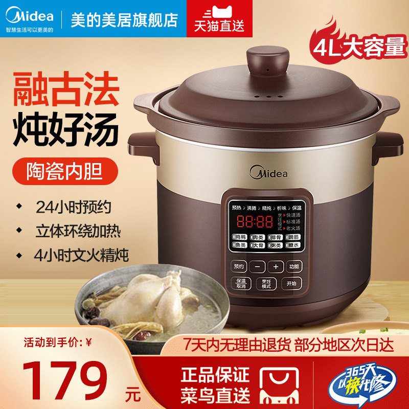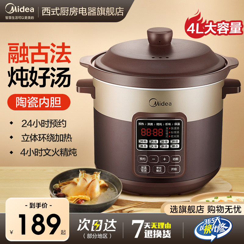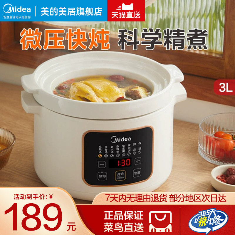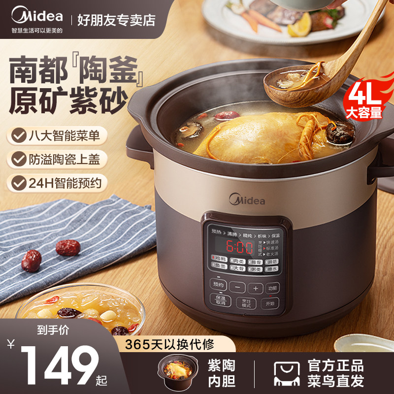 美的电炖锅煲汤锅家用紫砂锅炖汤炖锅电砂锅炖盅煮粥养生锅全自动