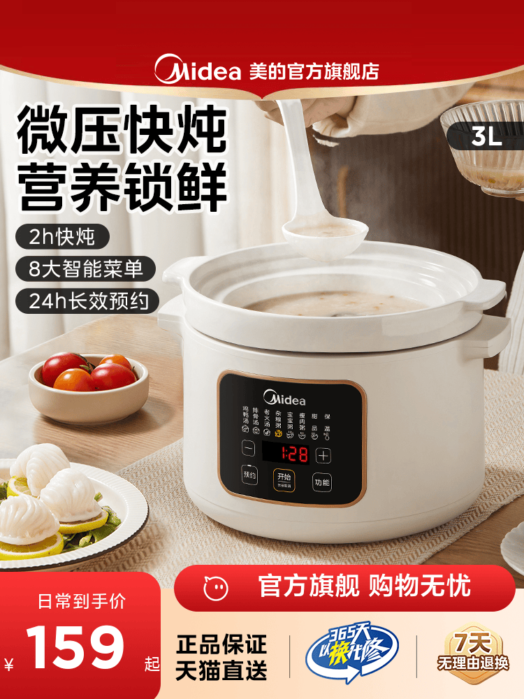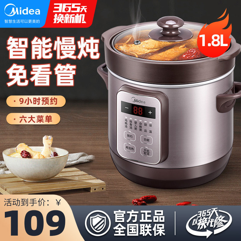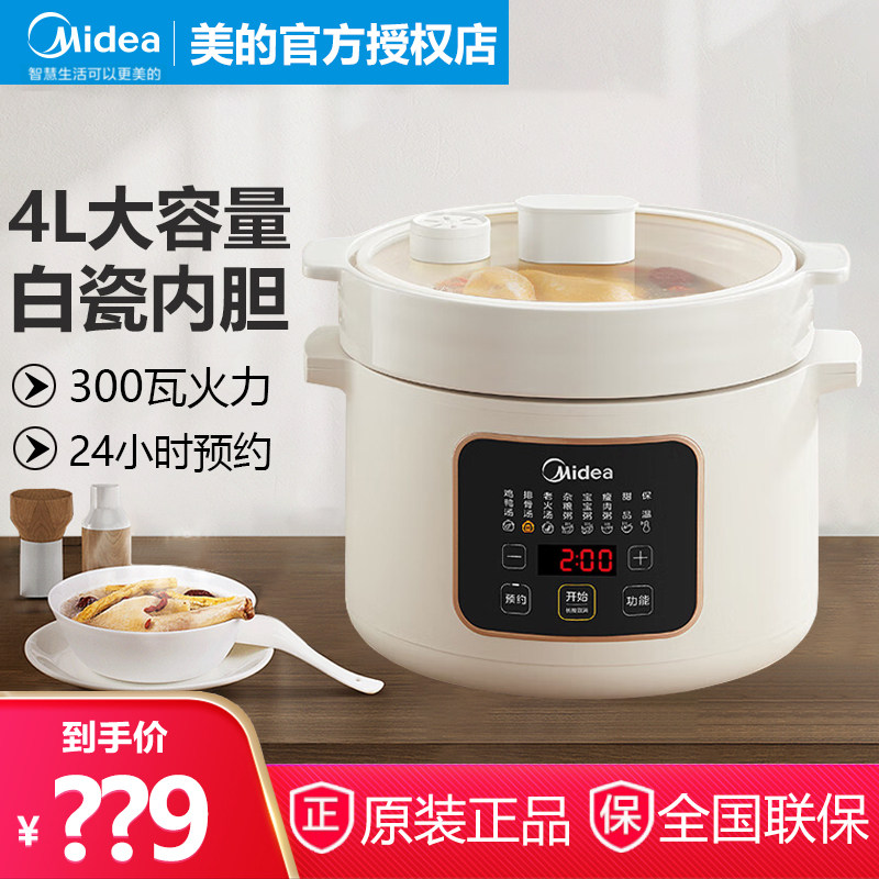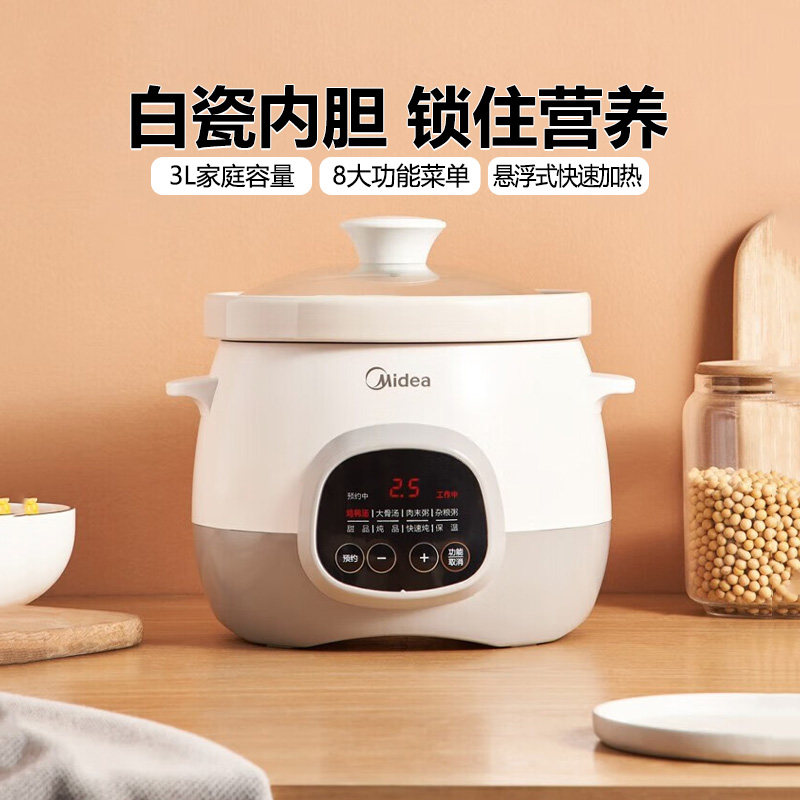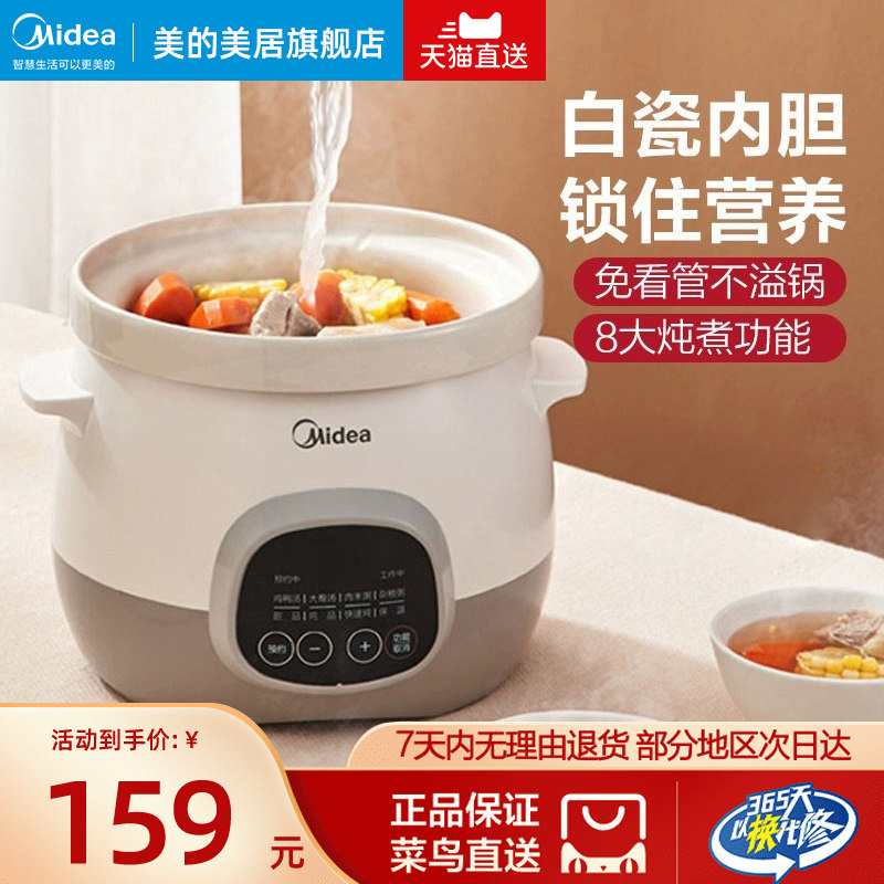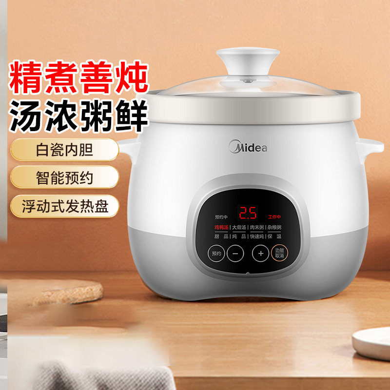 美的电炖锅家用全自动智能预约电炖盅2L升白瓷养生电砂锅煲汤炖肉
