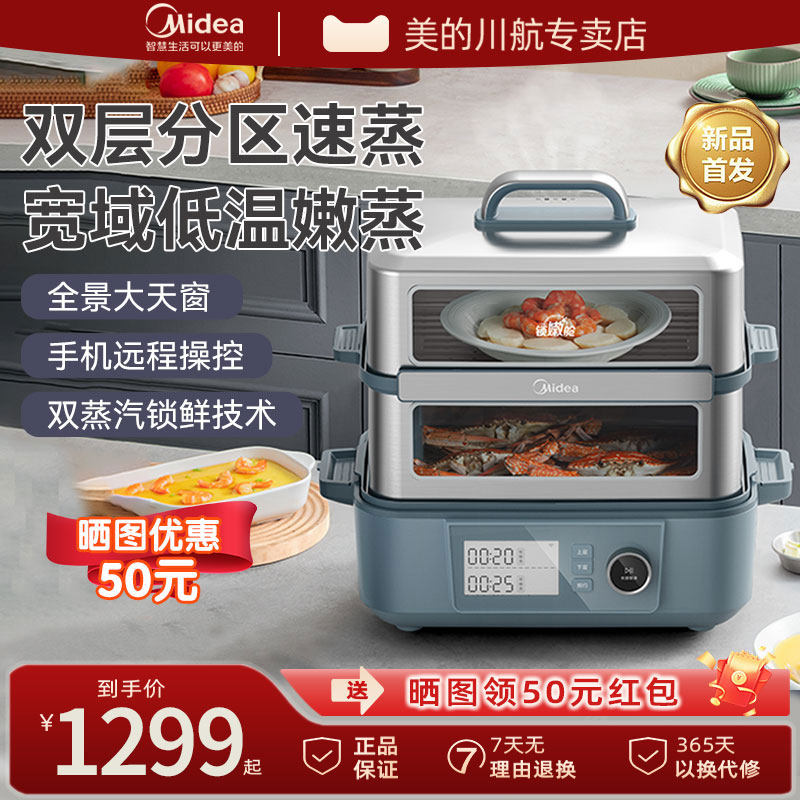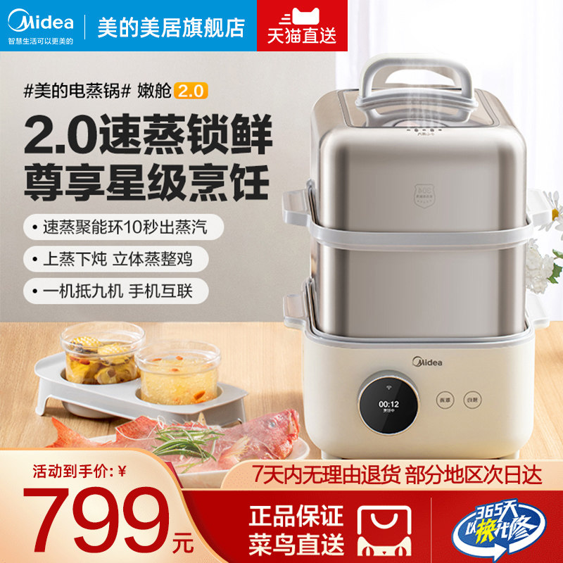 美的锁嫩舱电蒸锅家用多功能蒸煮一体锅隔水炖盅全自动预约蒸炖锅