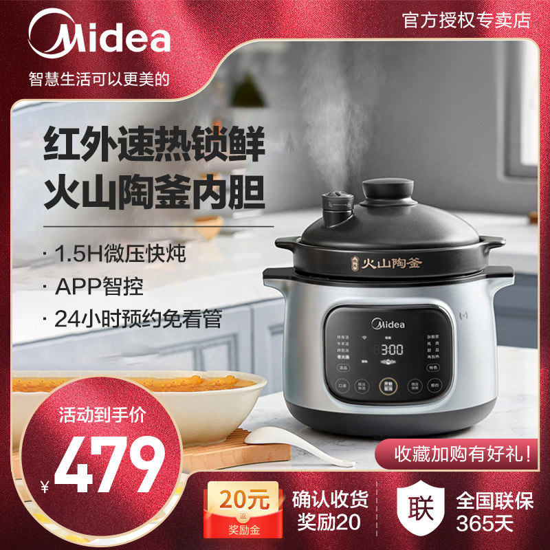 美的电炖锅家用电炖盅大容量煲汤陶瓷电砂锅全自动智能煮养生粥