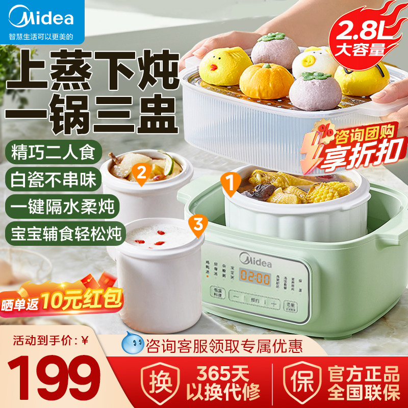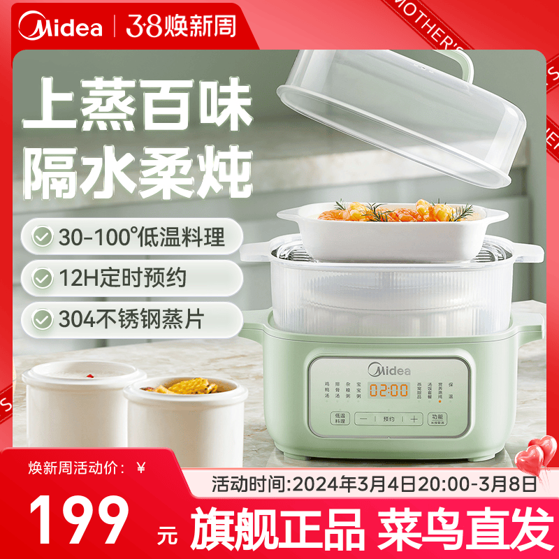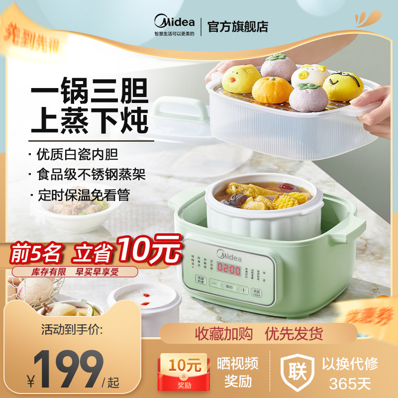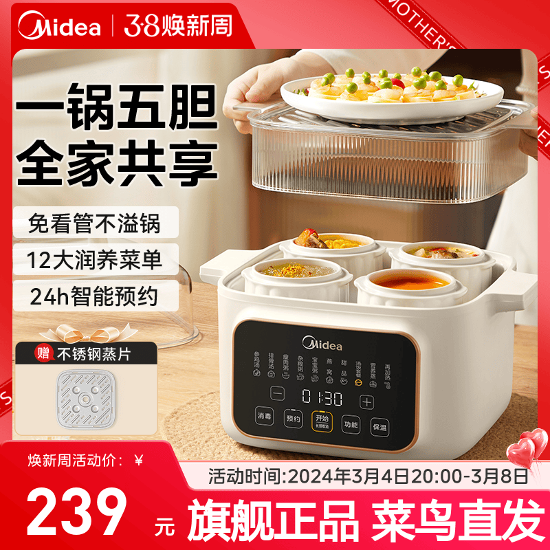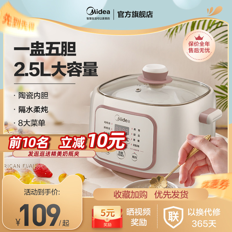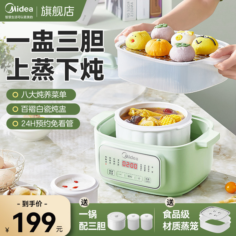 美的炖盅隔水炖家用电炖锅煲汤炖汤锅多功能蒸炖一体陶瓷2023新款