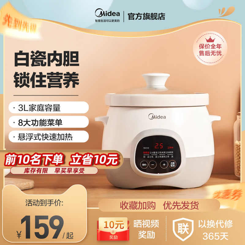 美的电炖锅炖盅陶瓷煲汤粥电砂锅煮粥家用智能自动旗舰正品煲汤锅
