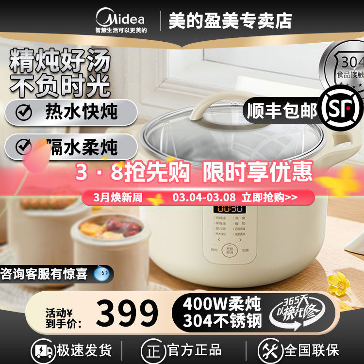 美的电炖锅炖盅隔水炖家用全自动燕窝陶瓷煲汤锅电砂锅官方旗舰店