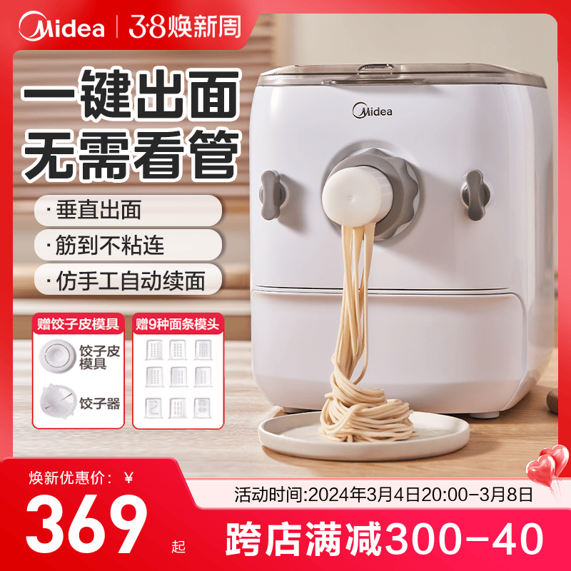 美的全自动面条机家用智能饺子皮小型压面机电动和面机打面机新款