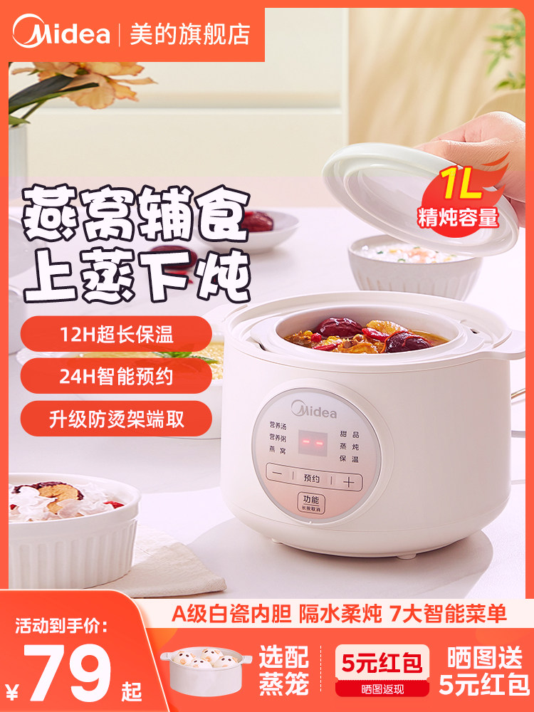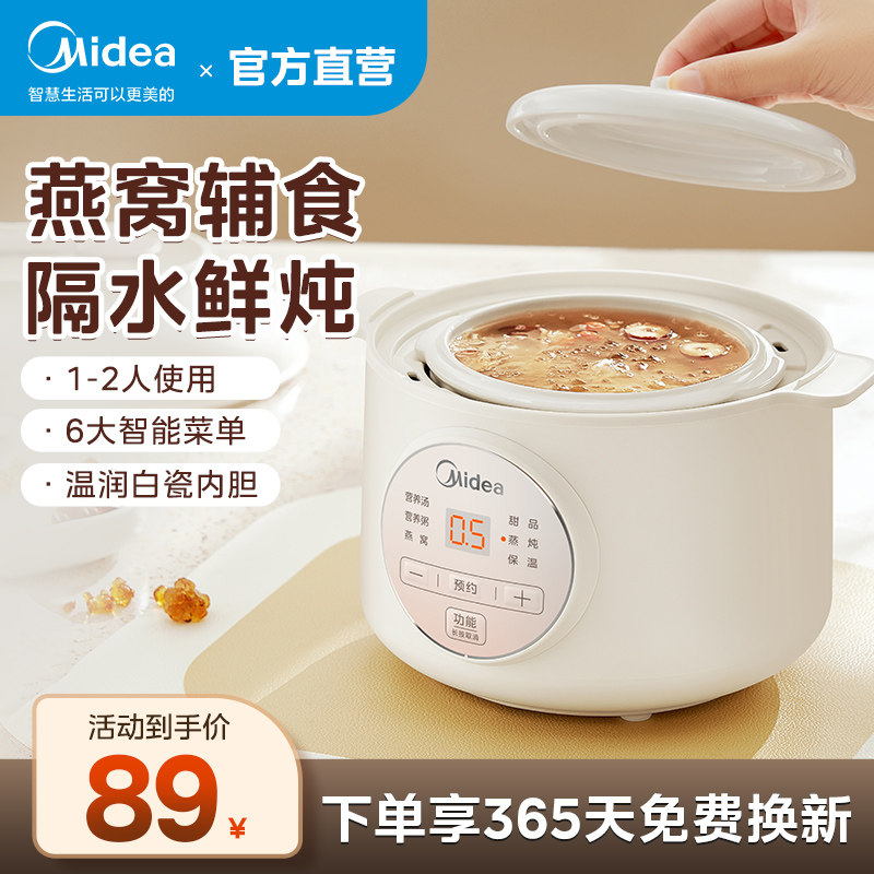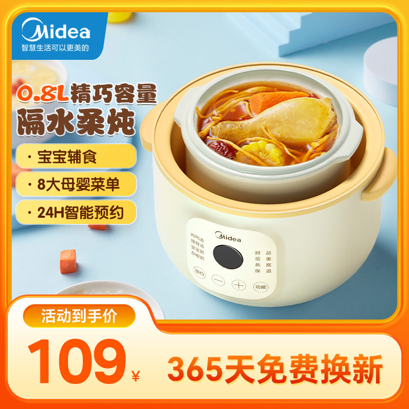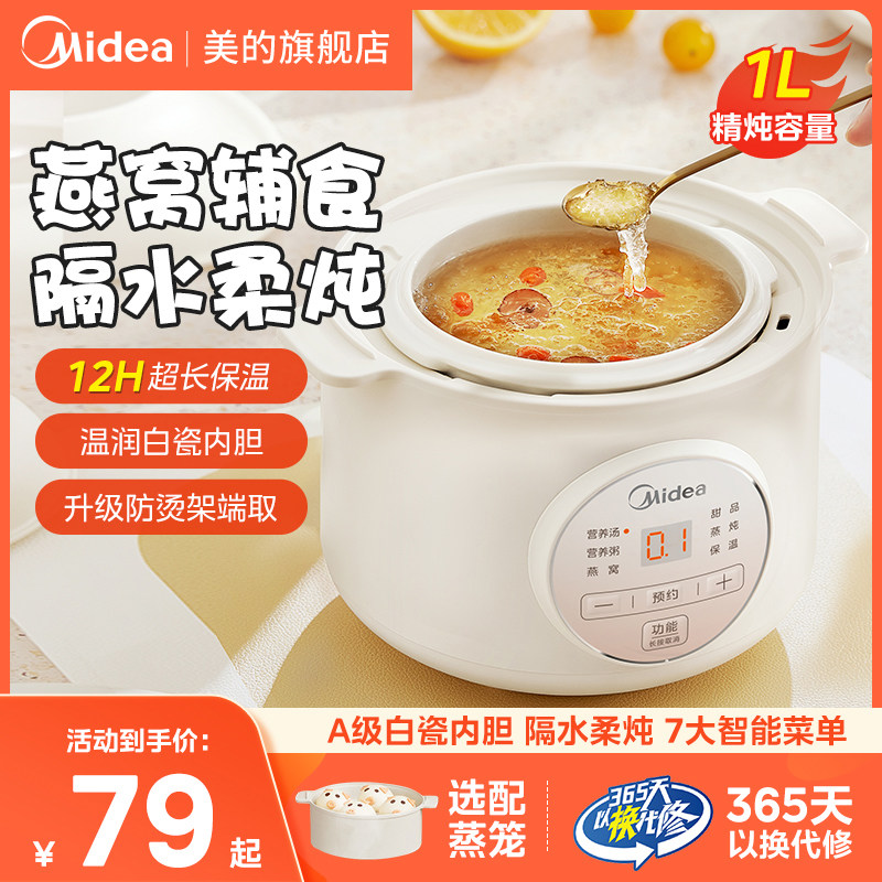 美的电炖锅宝宝婴儿辅食bb煲汤燕窝粥炖盅隔水炖家用陶瓷2023新款