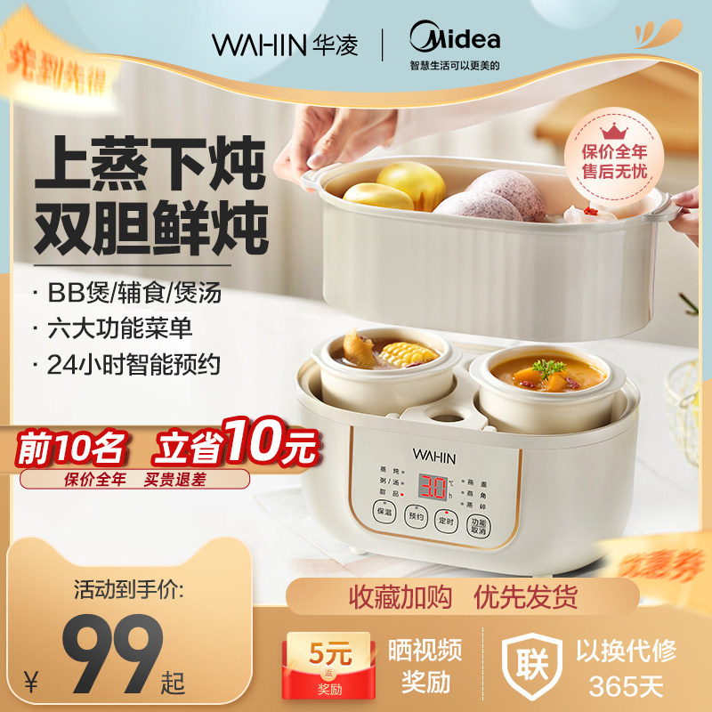 美的电炖锅隔水炖家用全自动陶瓷电炖盅多功能辅食煲汤炖燕窝华凌