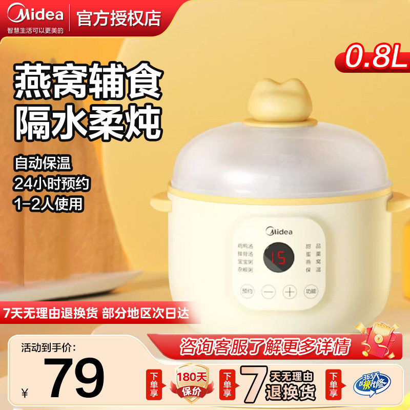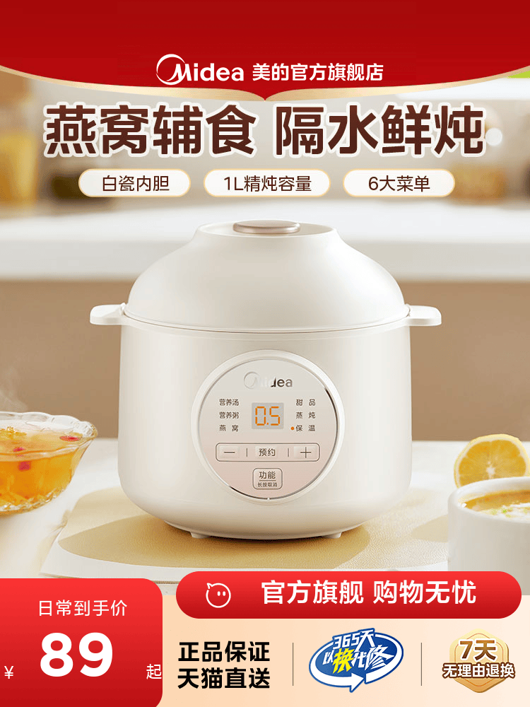 美的电炖锅宝宝煮粥锅婴儿辅食锅bb煲汤燕窝家用陶瓷电炖盅隔水炖