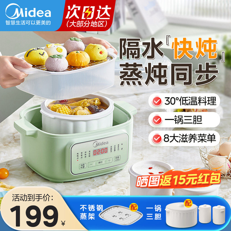 美的电炖锅炖盅隔水炖家用宝宝炖锅bb煲煮粥婴儿辅食锅陶瓷煲汤锅