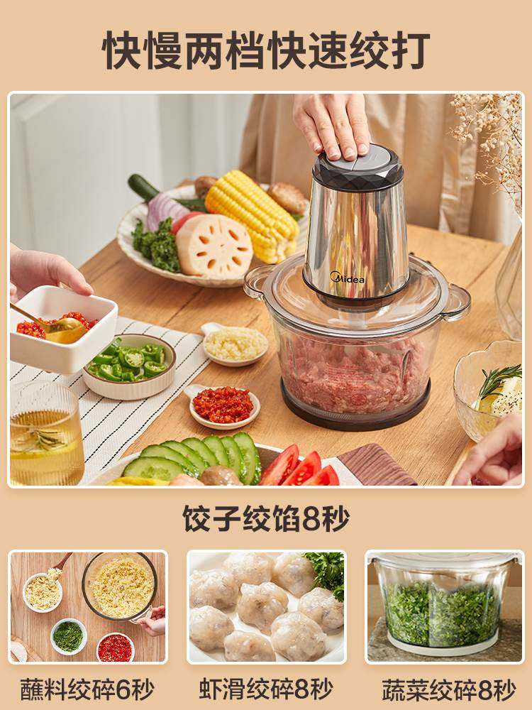 美的绞肉机家用电动小型2L搅拌多功能料理辅食佐料饺馅机火锅捣蒜