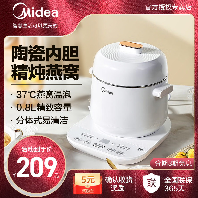 美的电炖锅隔水炖家用炖盅燕窝宝宝婴儿辅食温奶煮粥煲汤小型陶瓷