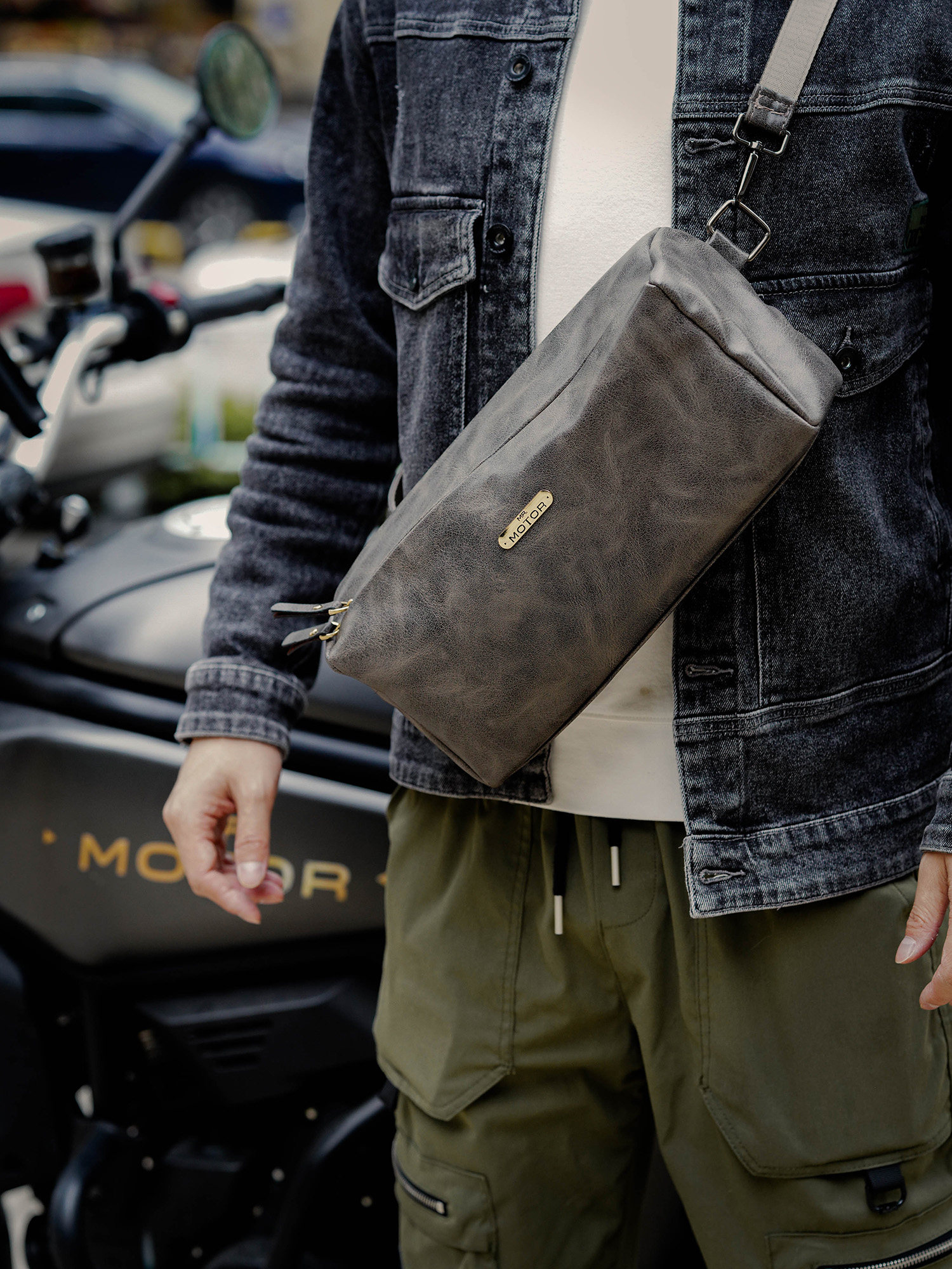 .复古机车摩托车阿美咔叽男女单肩斜挎包胸包软骑行腰包【风迹】
