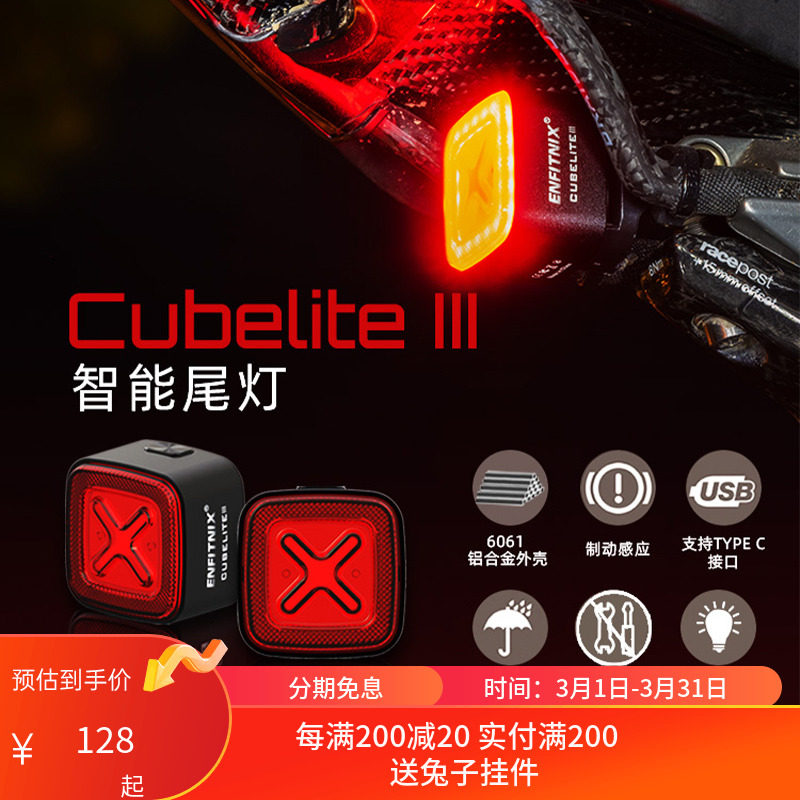 英豪Enfitnix新款尾灯感应刹车灯公路自行车USB充电夜骑骑行尾灯
