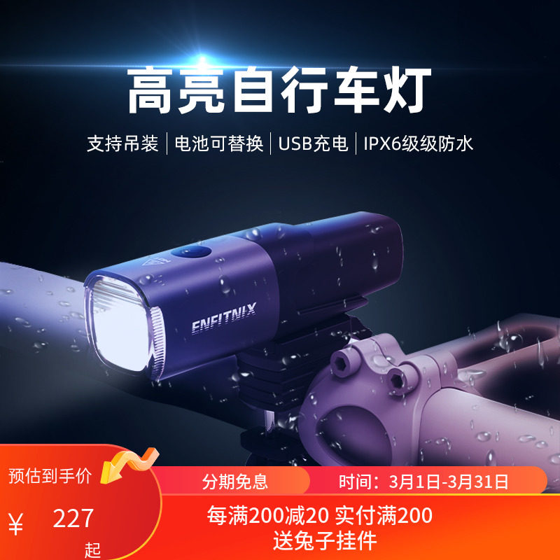 自行车灯夜骑前灯儿童充电骑行装备单车夜行灯配件大全手电筒超亮