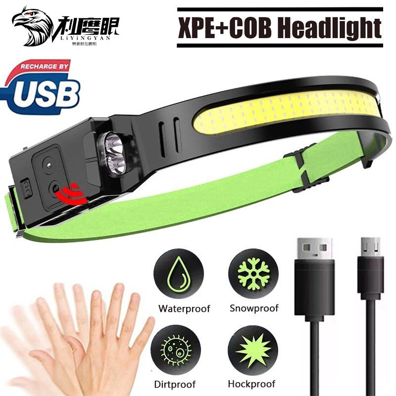 新款硅胶感应头灯Type-C充电户外跑步骑行便携式泛光LED头灯