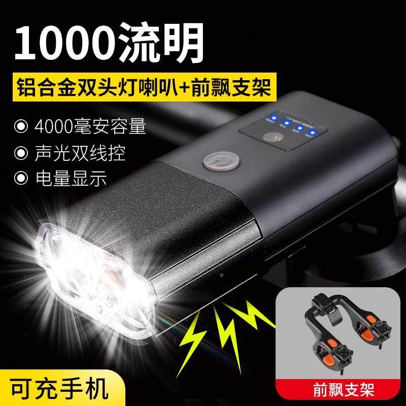 自行车喇叭夜骑前灯山地车充电强光夜行夜灯儿童夜间骑行铃铛一体