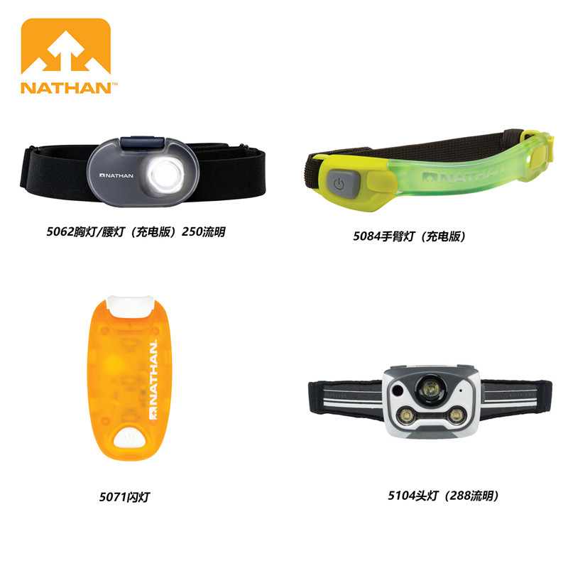 6折美国Nathan户外运动跑步骑行安全灯夜跑充电手臂灯闪灯头灯