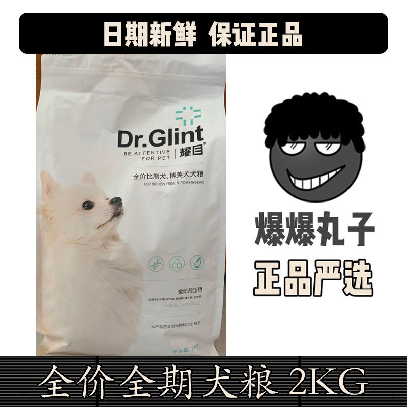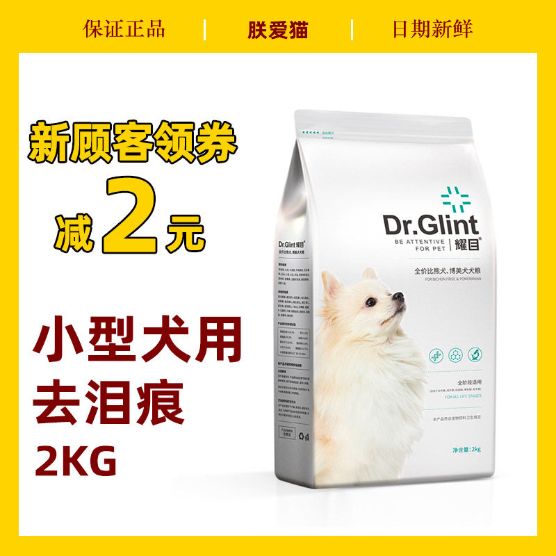 耀目 博美专用狗粮2kg棕色白色小型成幼犬全期美毛去泪痕护肤明目