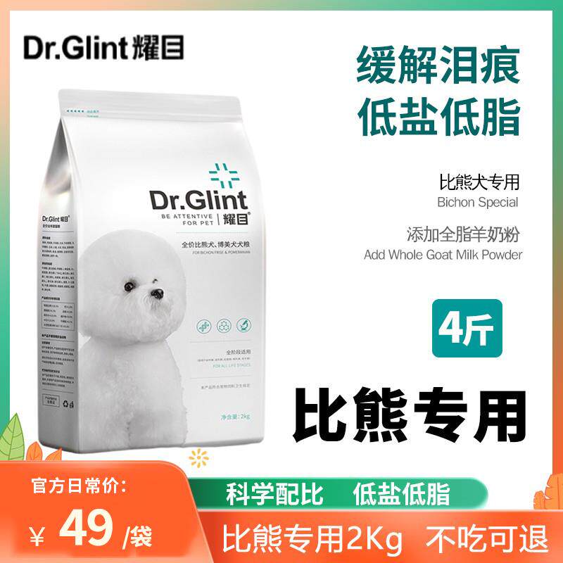 耀目比熊狗粮幼犬成犬通用白色小型美毛低盐轻泪痕专用粮奶糕4斤