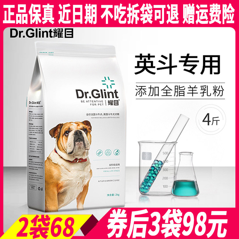 耀目英斗专用狗粮2kg斗牛犬成幼犬全期通用改善体臭便臭羊奶配方
