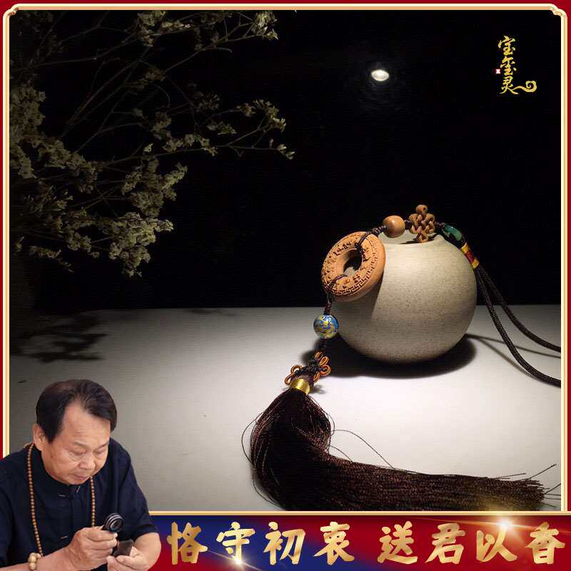 宝玺灵老山檀香手持挂件汽车挂件配大漆珠花莲平安扣礼品挂饰饰品