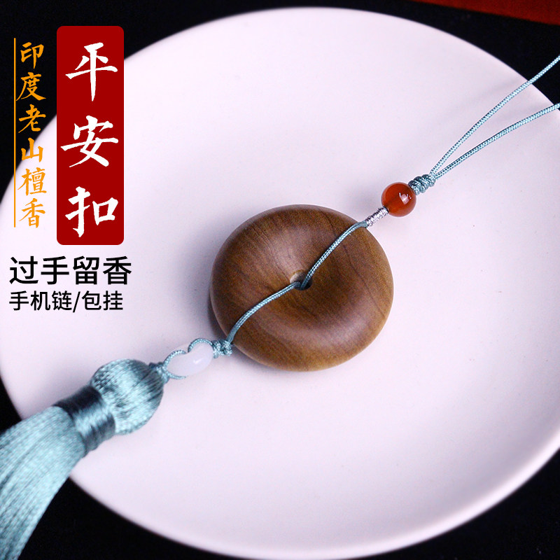印度老山檀香平安扣汽车钥匙扣平安无事木质文玩手机挂件男女吊坠
