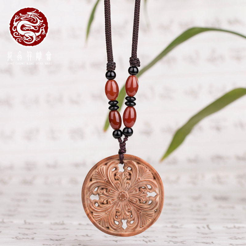龙虫并雕斋印度老山檀香吊坠 牡丹木质项链配饰男女款DIY平安扣